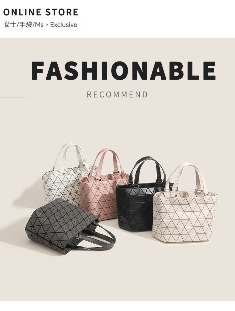 手提包 水桶包 水晶包 菱格包 白色包包 大容量包包 黑色包包 日系包包 幾何菱格包 磨砂手提袋 女生禮物 送禮 574