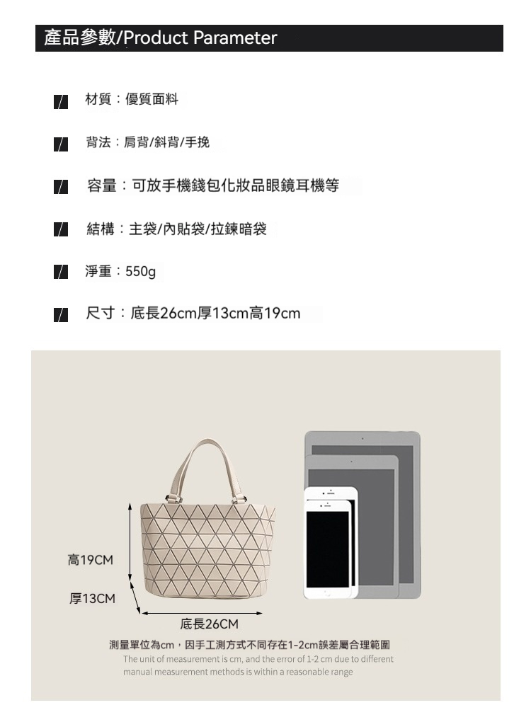 👜容量:大號可放A4、iPad、長夾及其他隨身物品