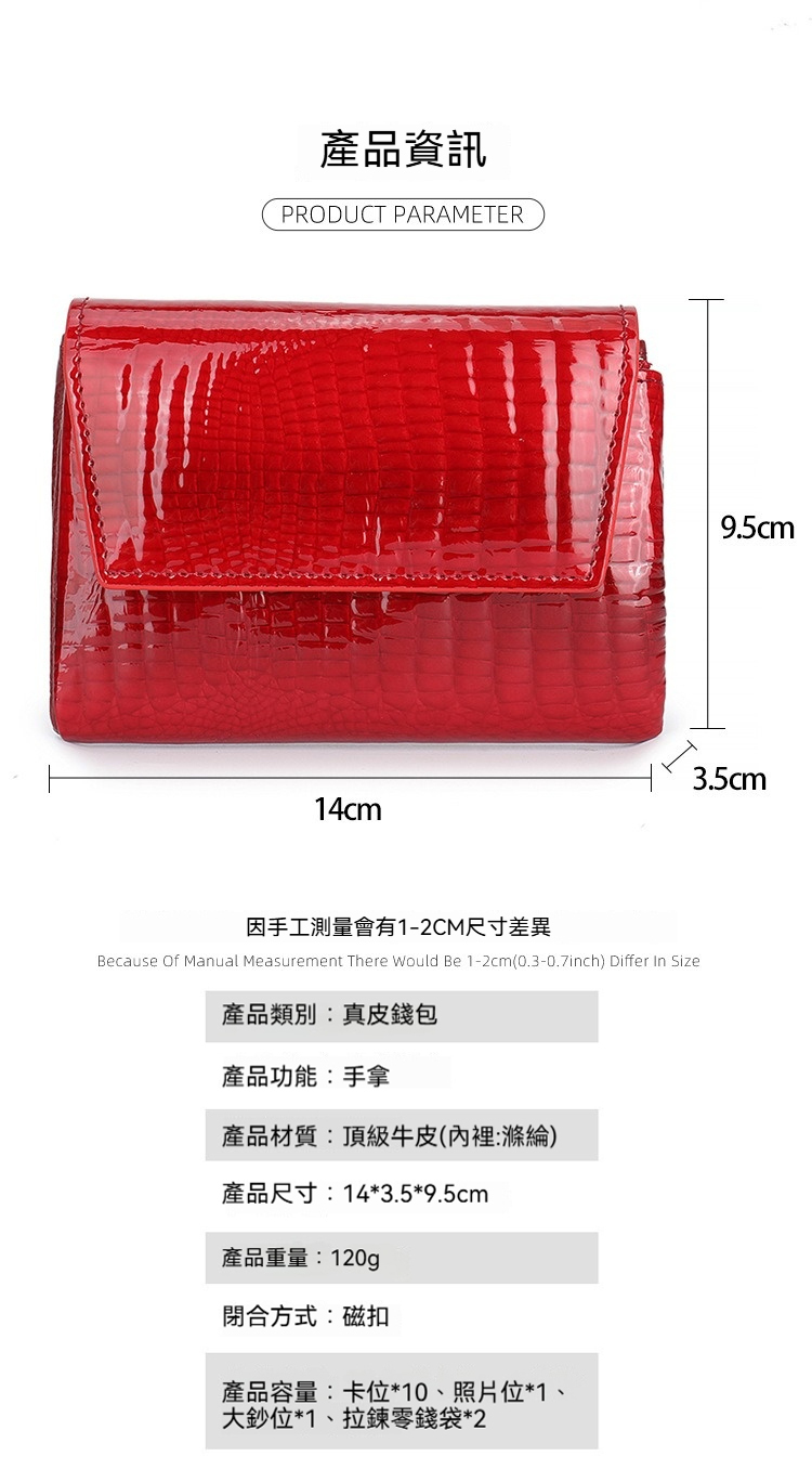 👜結構:卡位*10、照片位*1、大鈔位*1、拉鍊零錢袋*2
