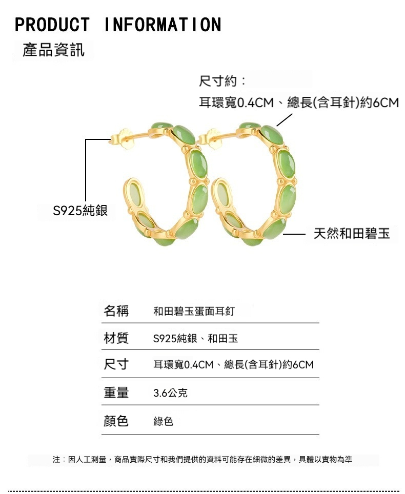 👜商品尺吋:耳環寬0.4CM、總長(含耳針)約6CM