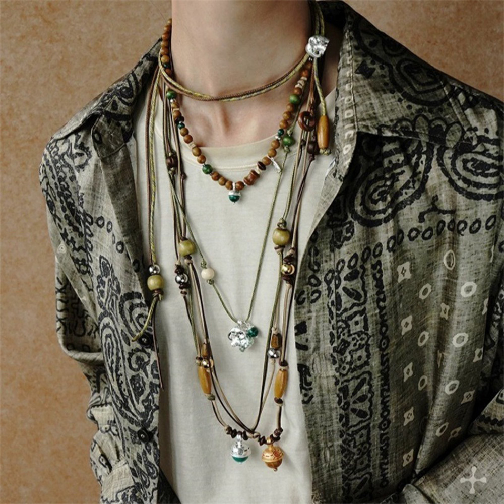✨ 材質:木珠、黃玉石、孔雀石