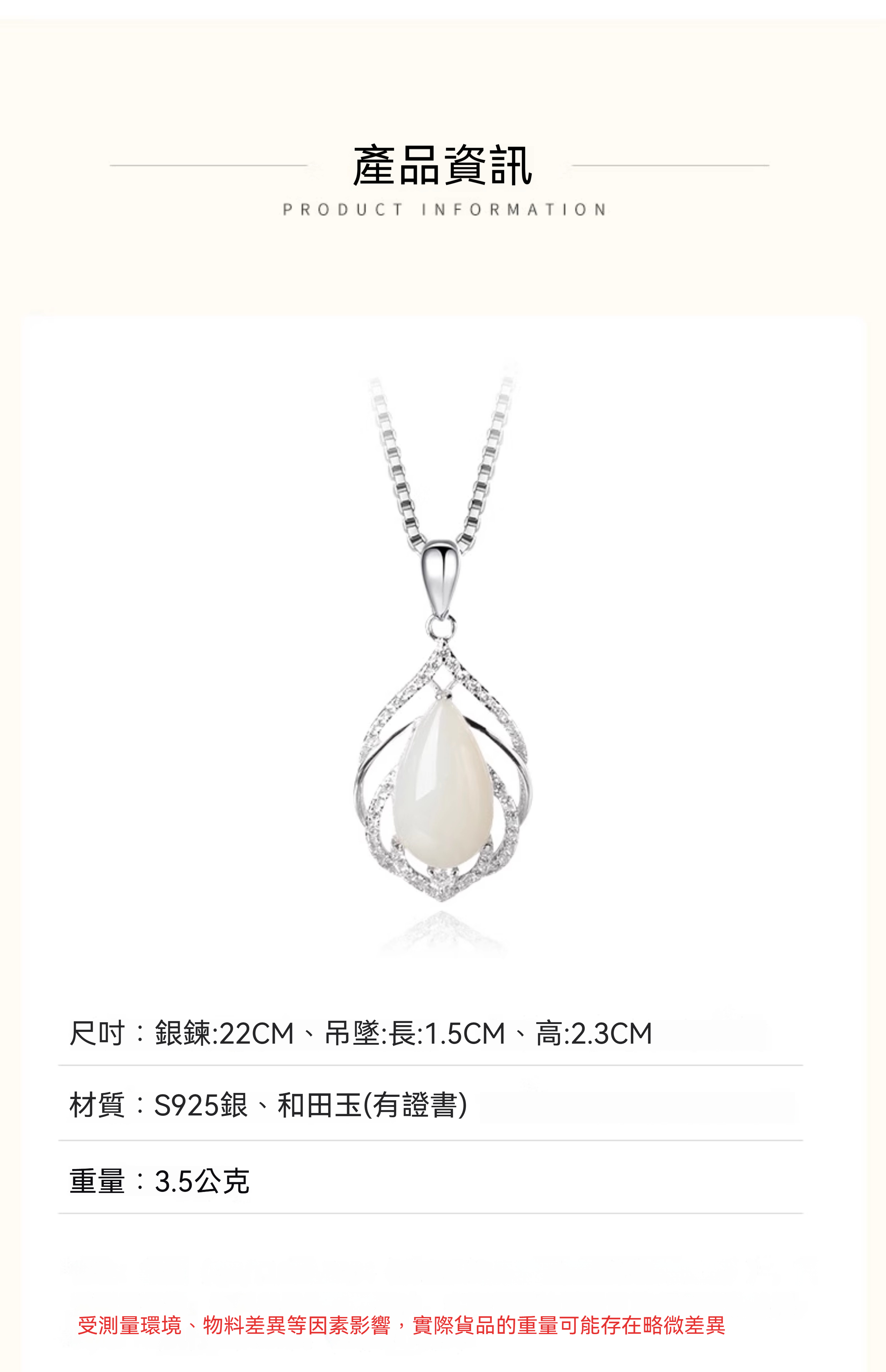 ✨ 商品尺吋:銀鍊:22CM、吊墜:長:1.5CM、高:2.3CM