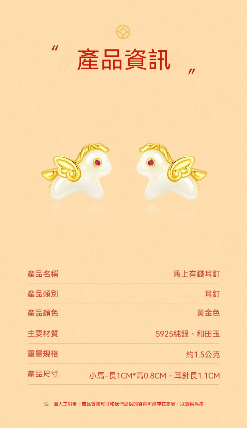👜商品尺吋:小馬-長1CM*高0.8CM、耳針長1.1CM