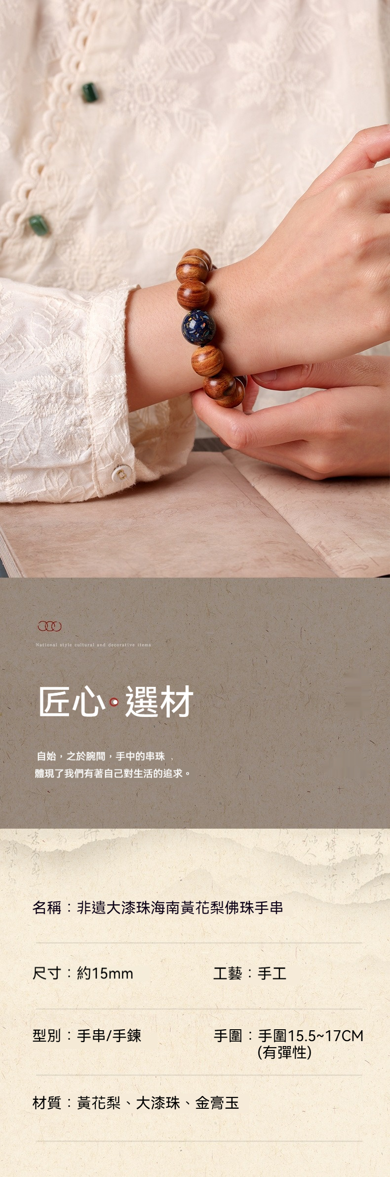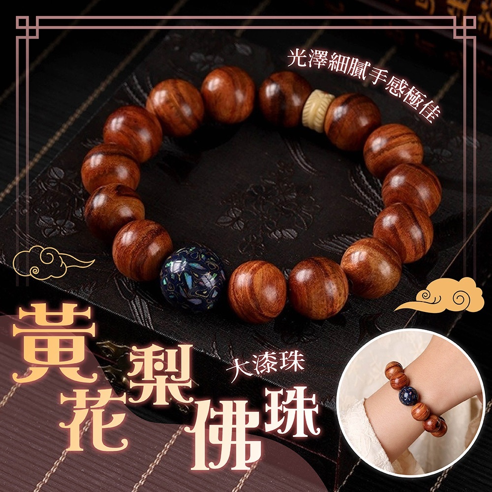 ✨ 材質:黃花梨、大漆珠、金膏玉