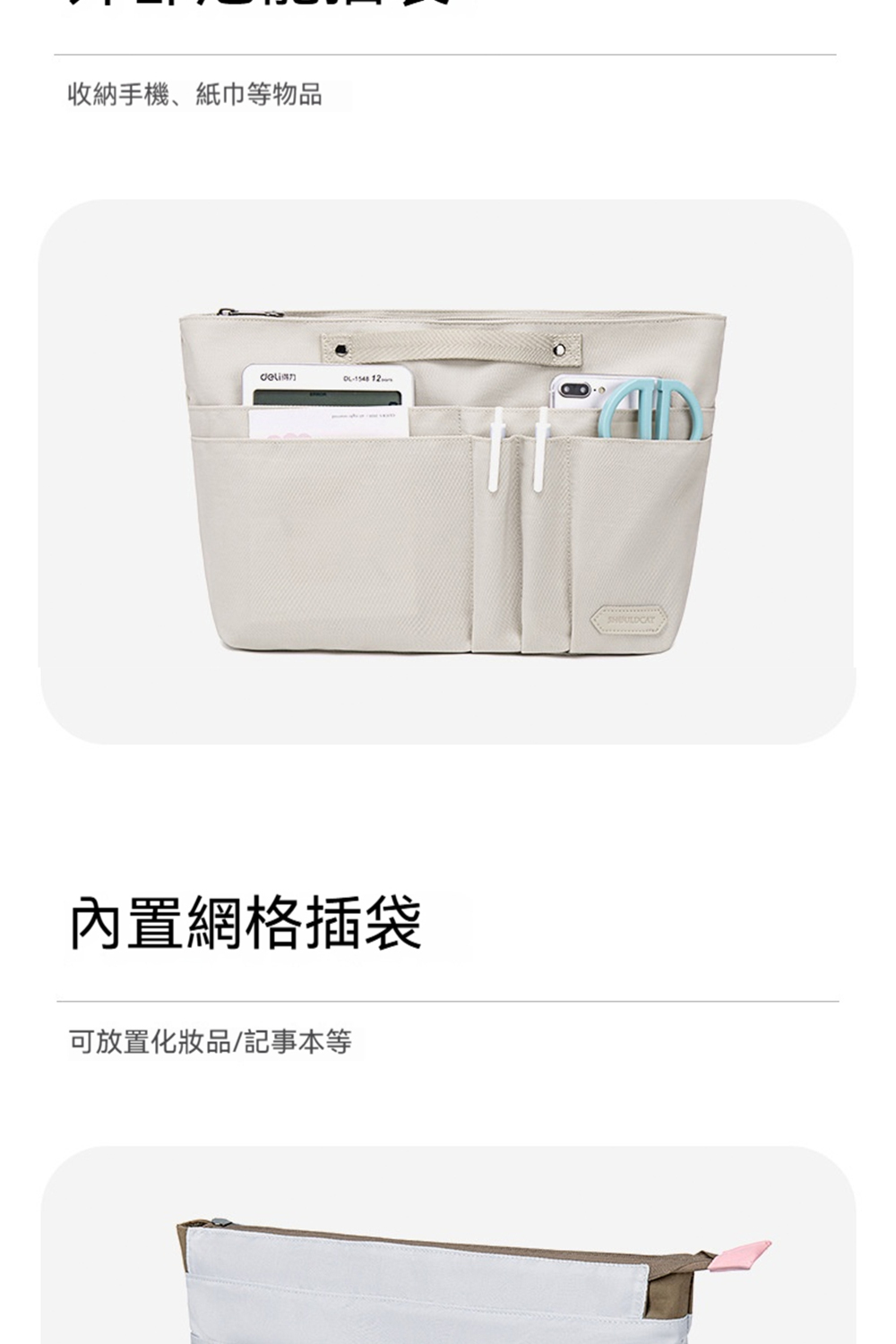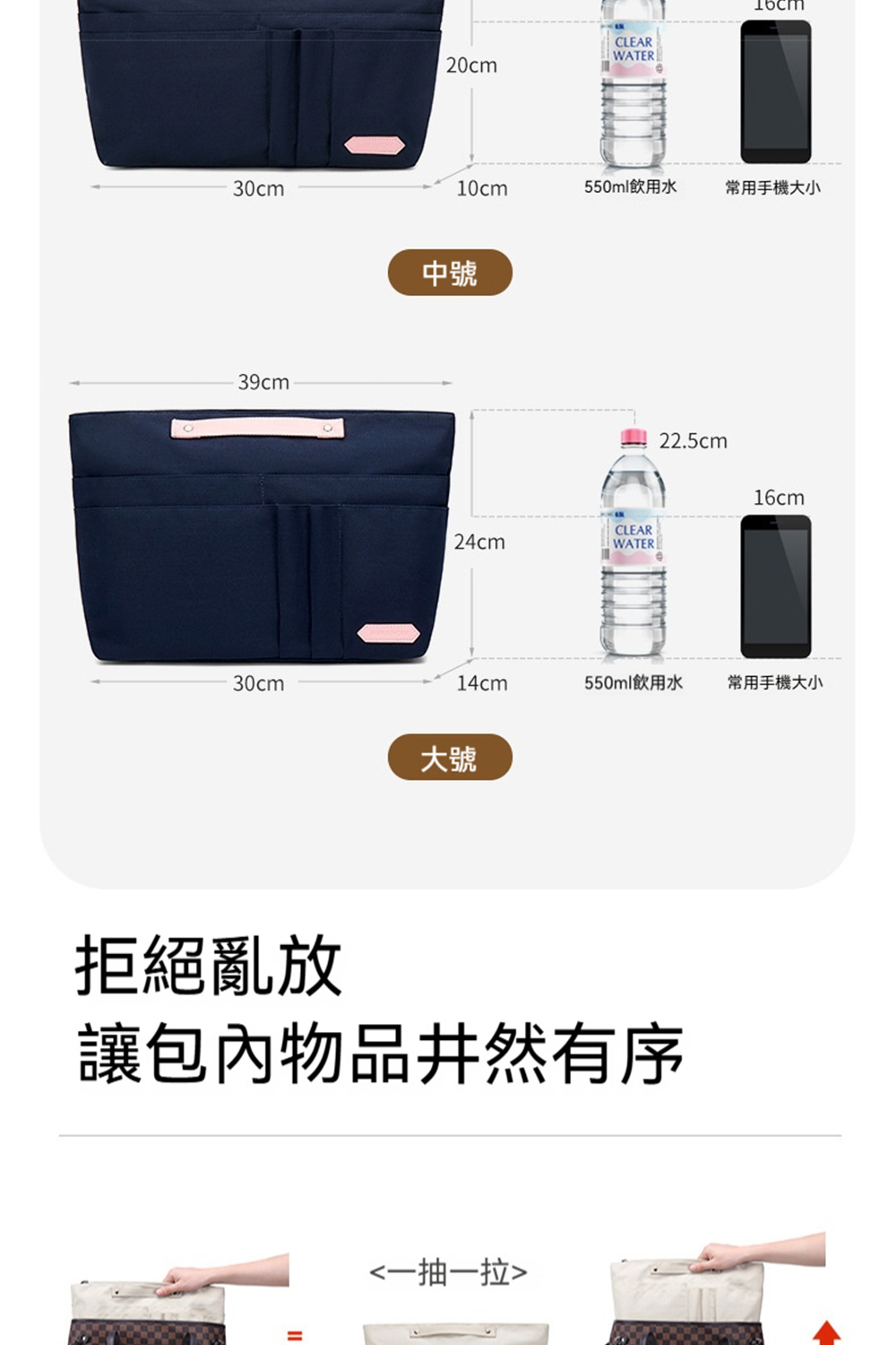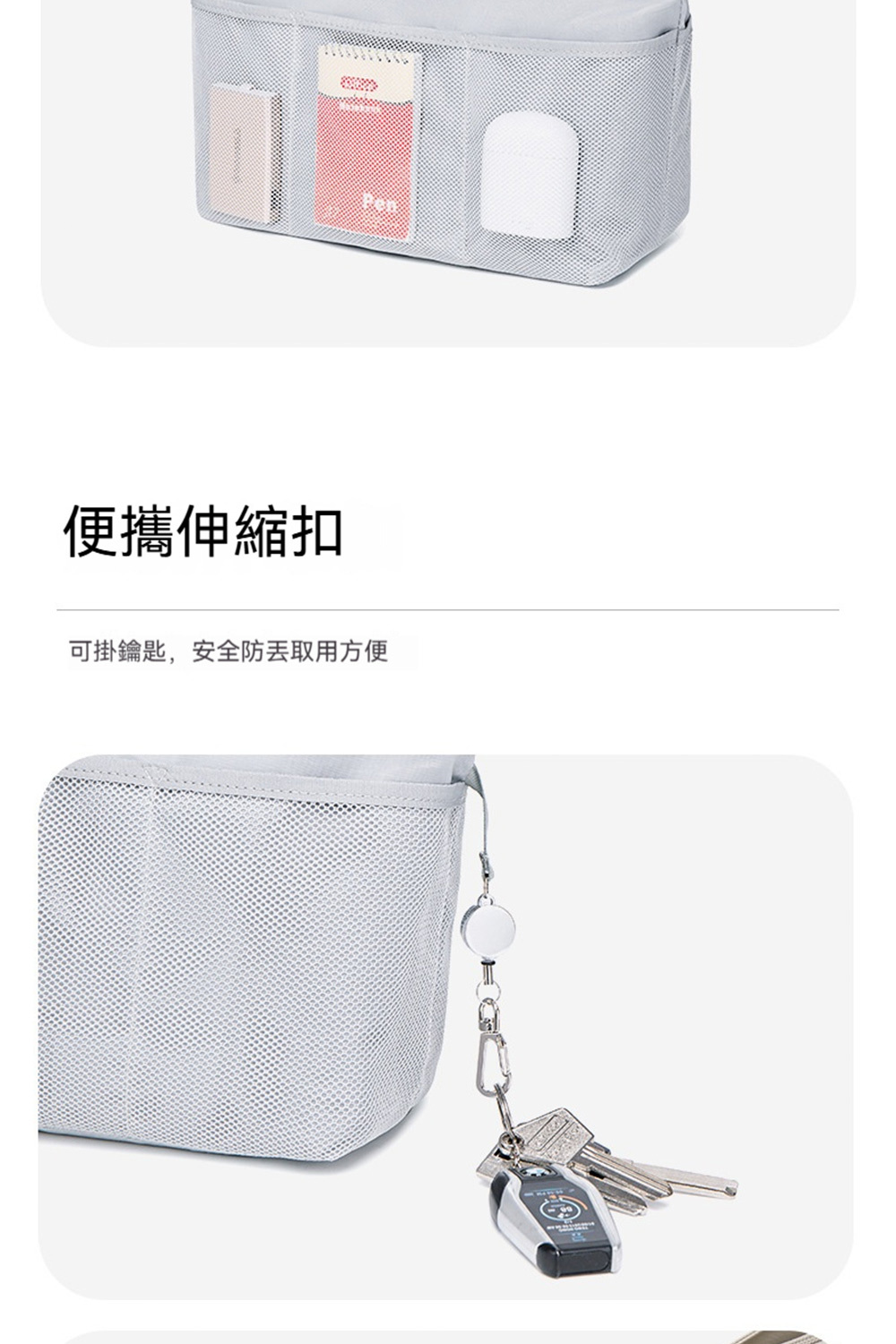 👜容量 / 結構:主袋、內貼網袋*6、外幅貼袋*6、筆插*2、伸縮鉤環