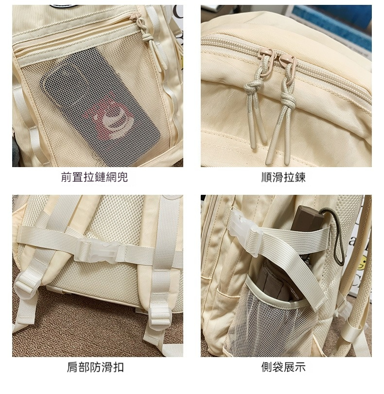 👜結構:主袋(內含網格貼袋、電器緩衝層)、前幅拉鍊袋1(內含內貼袋*2、拉鍊網格袋、網格袋*2)、前幅拉鍊袋2、前幅拉鍊網格袋、兩側插袋