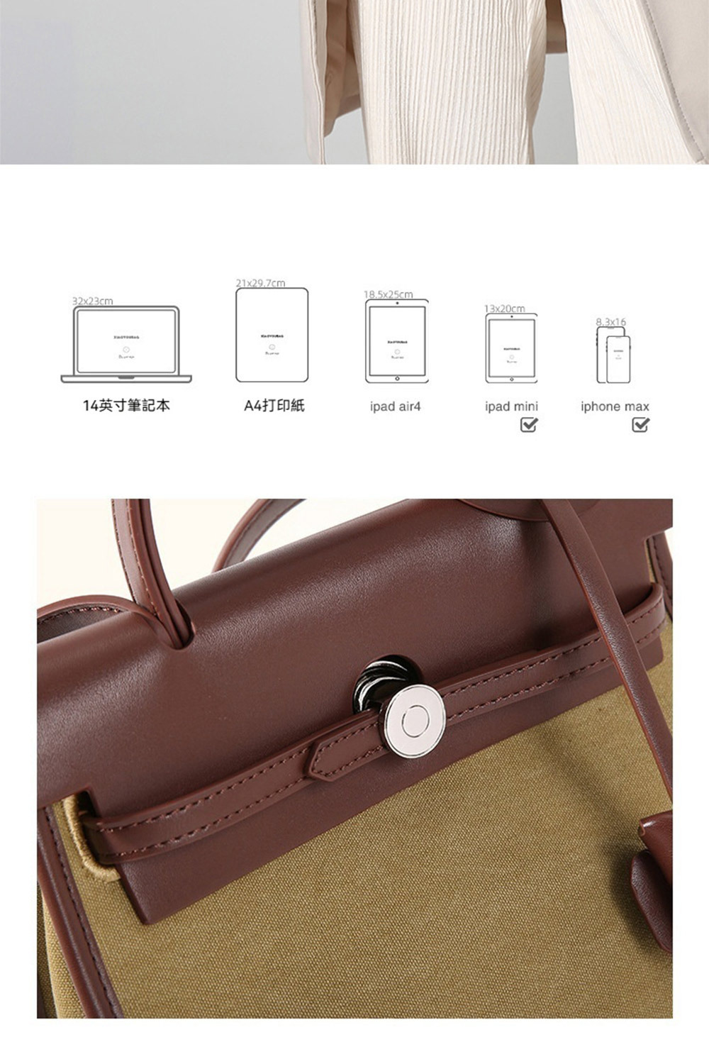 👜容量:可放iPad mini、長夾及其他隨身物品