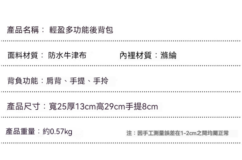 👜容量:無法放A4,可放9.7吋平板、長夾及其他隨身物品