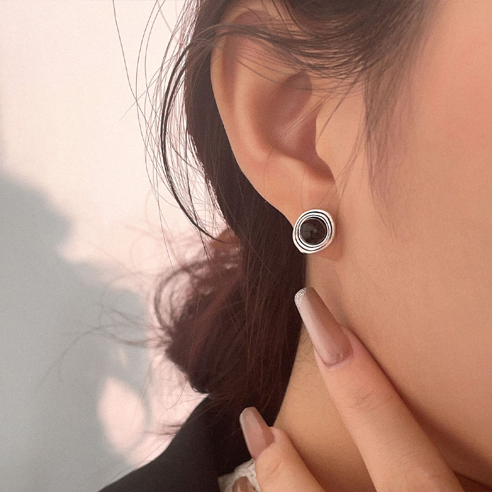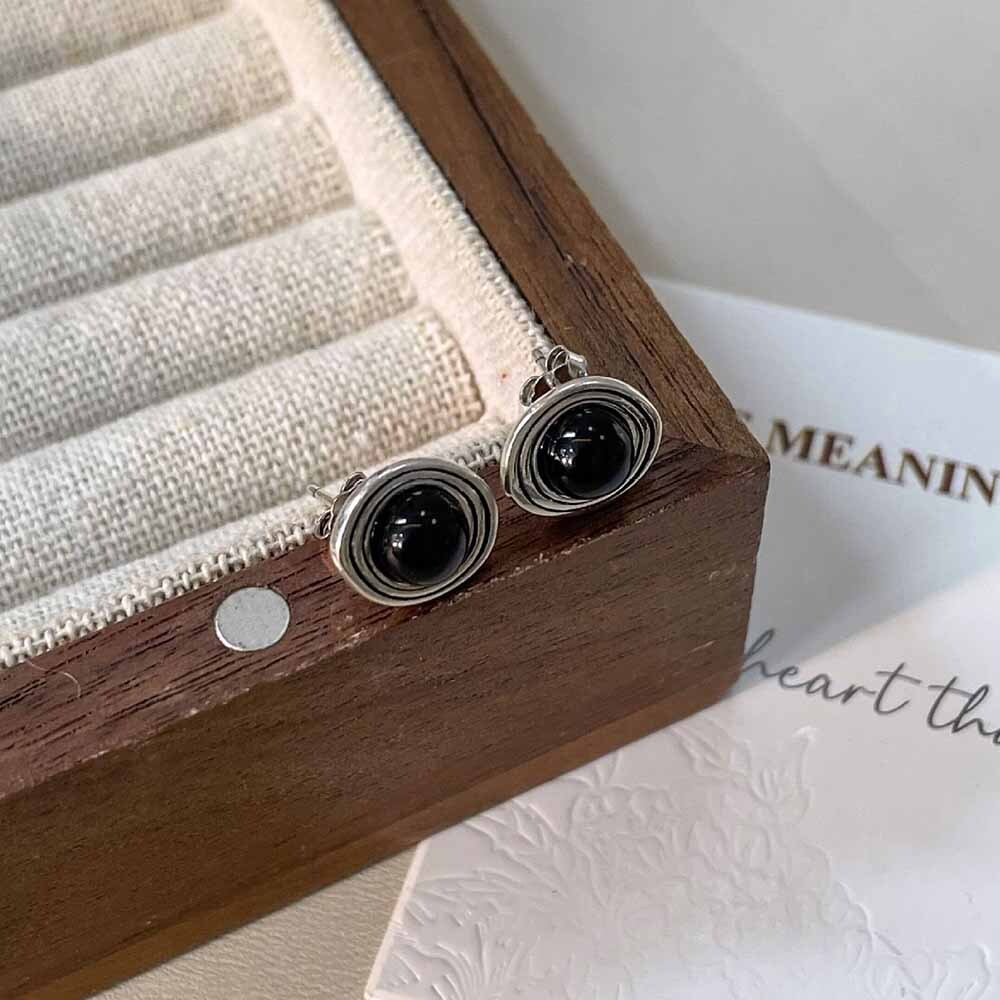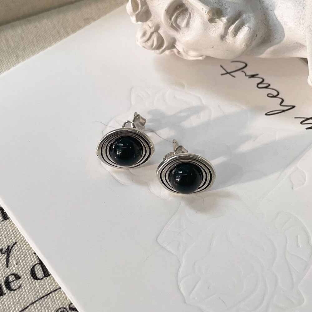 耳環 女生耳環 飾品 韓式耳環 s925純銀 抗過敏耳針 黑瑪瑙 耳釘 法式耳環 高級感 百搭 穿搭配件 氣質 464
