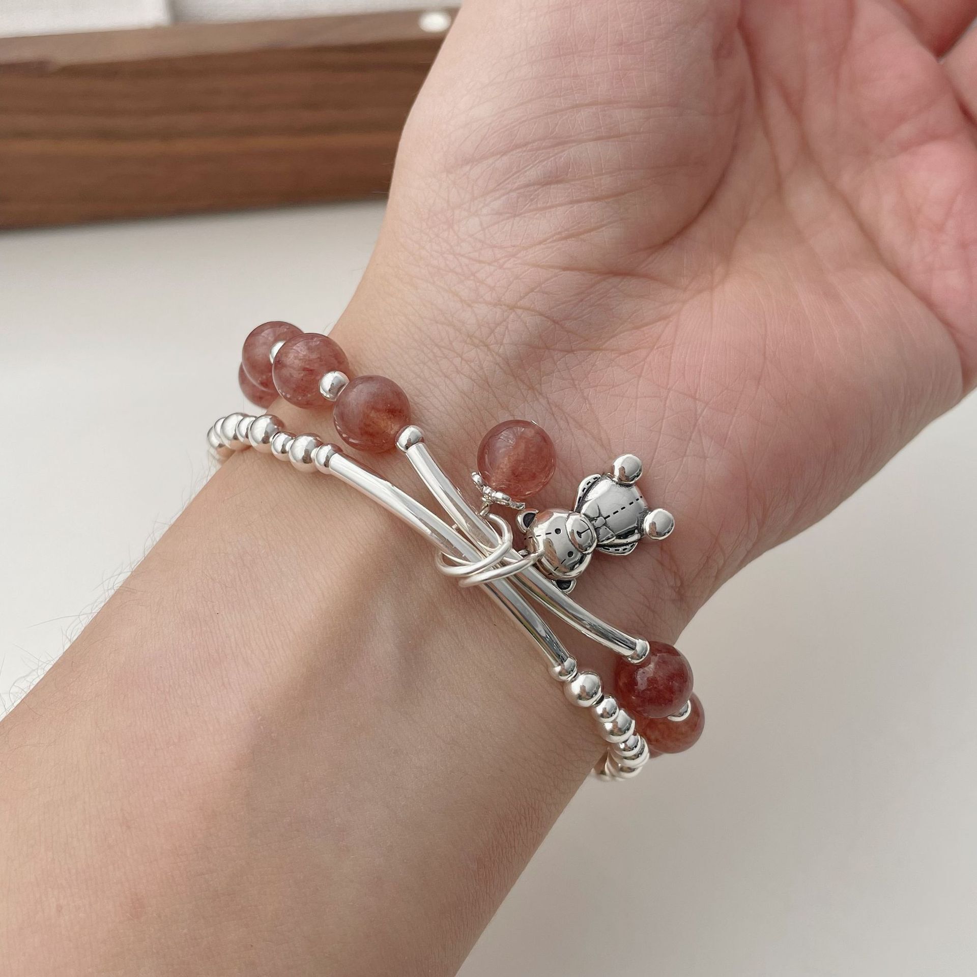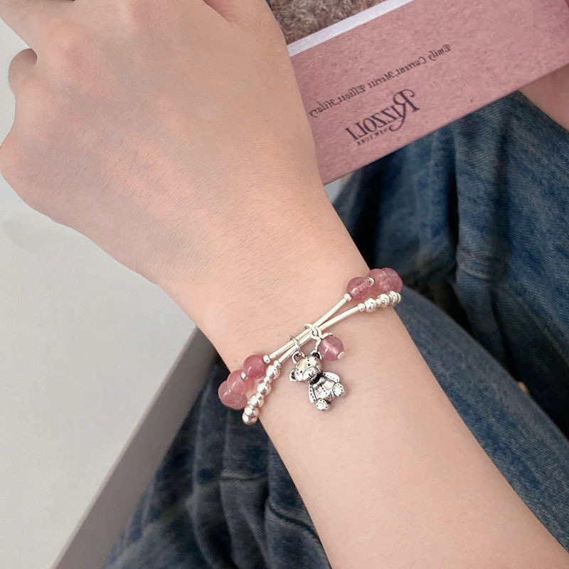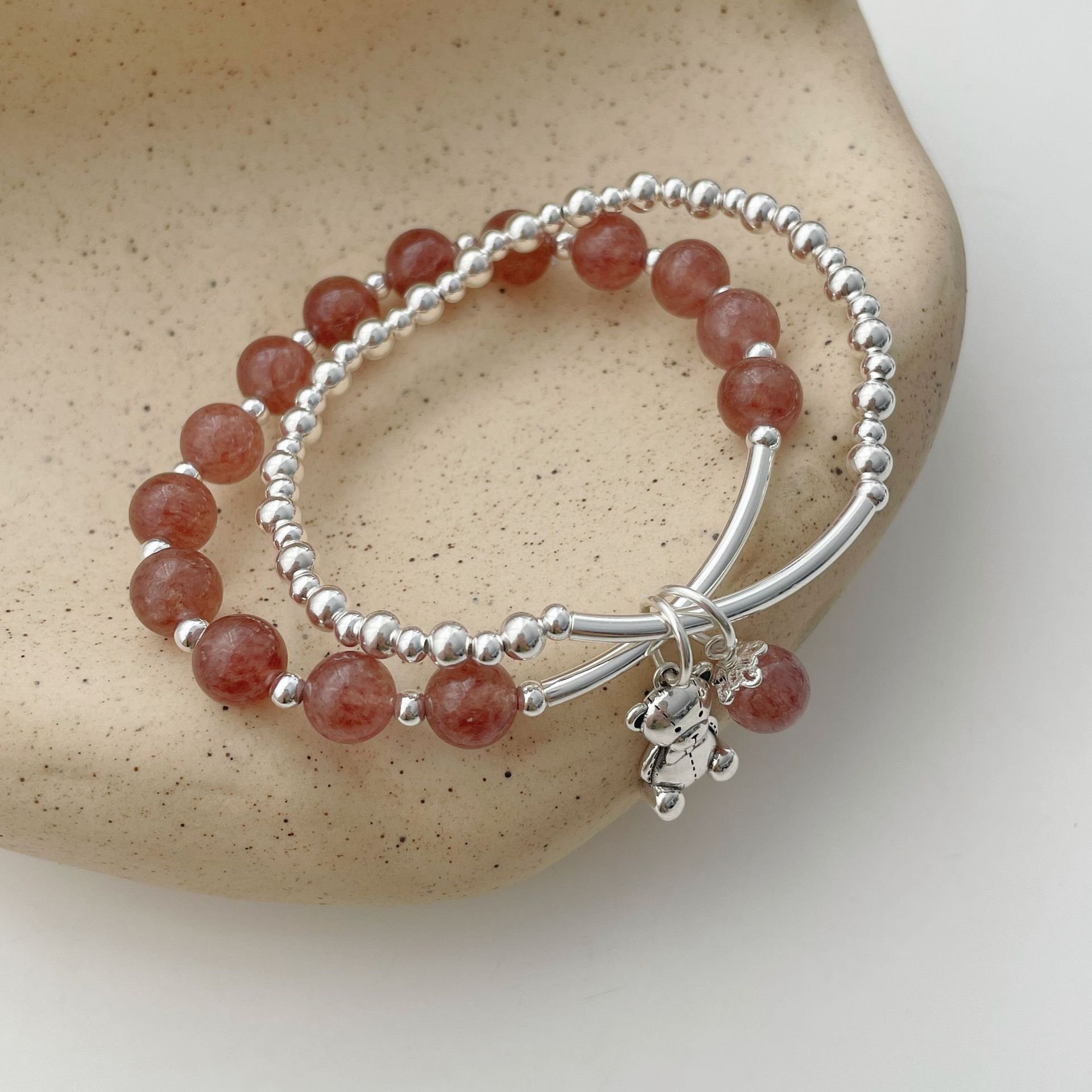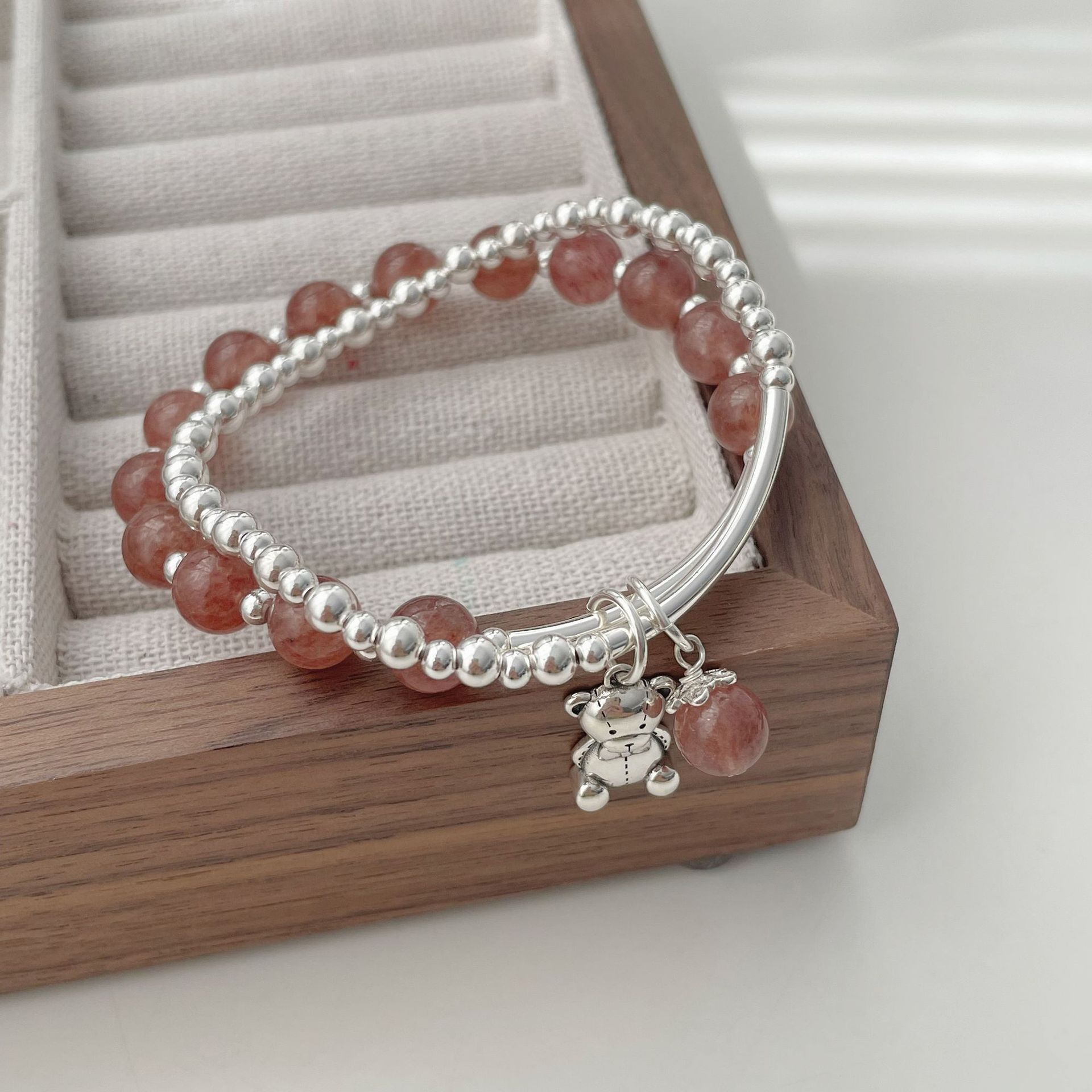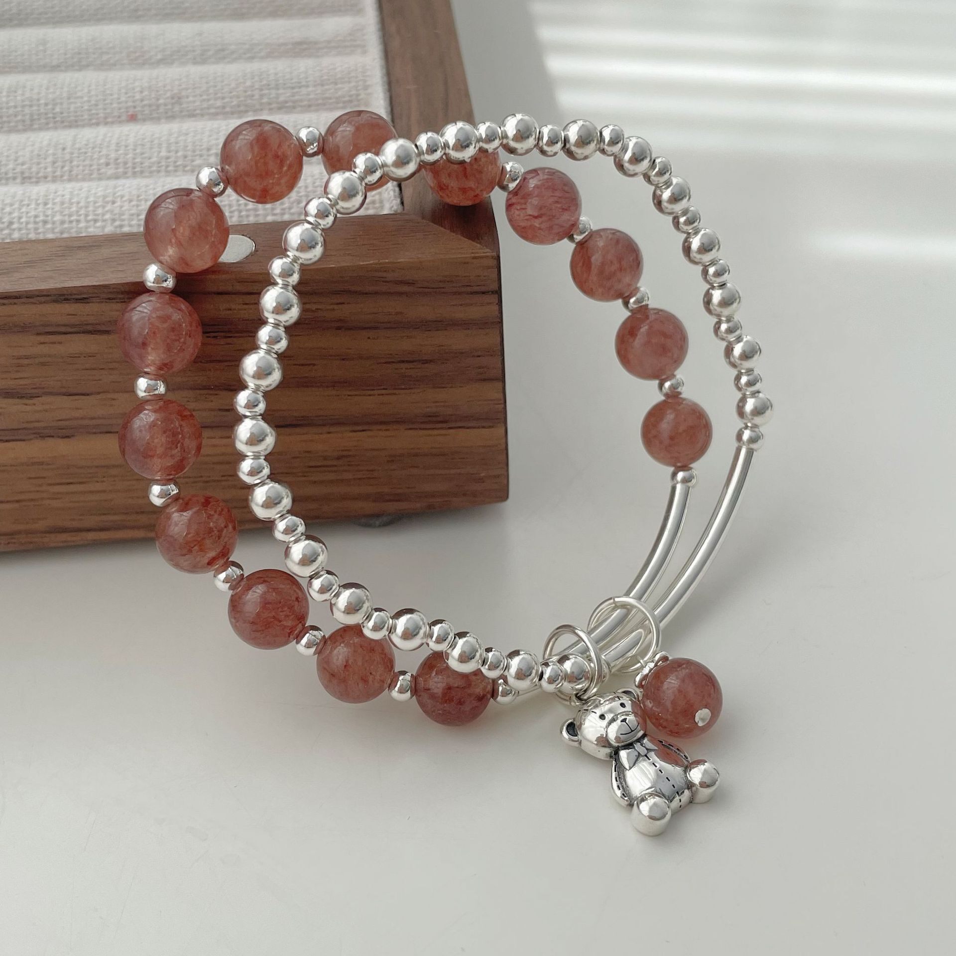 ✨ 商品尺吋:草莓晶約8mm、小熊吊墜-長1cm、高1.5cm(有彈性) 、建議手圍15~16cm