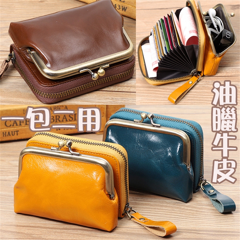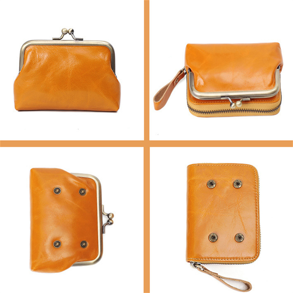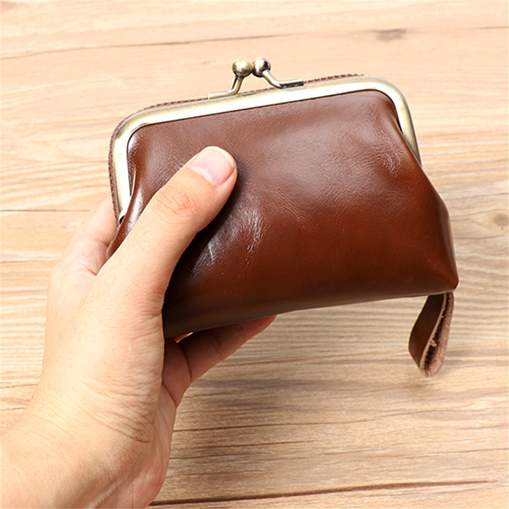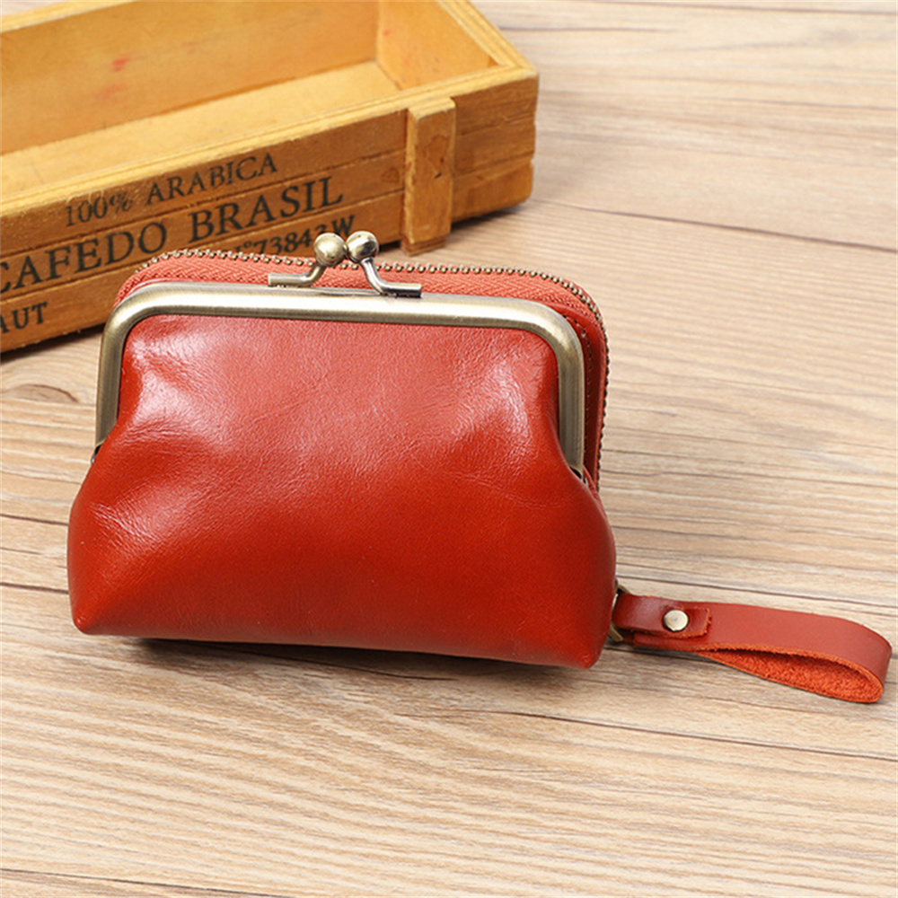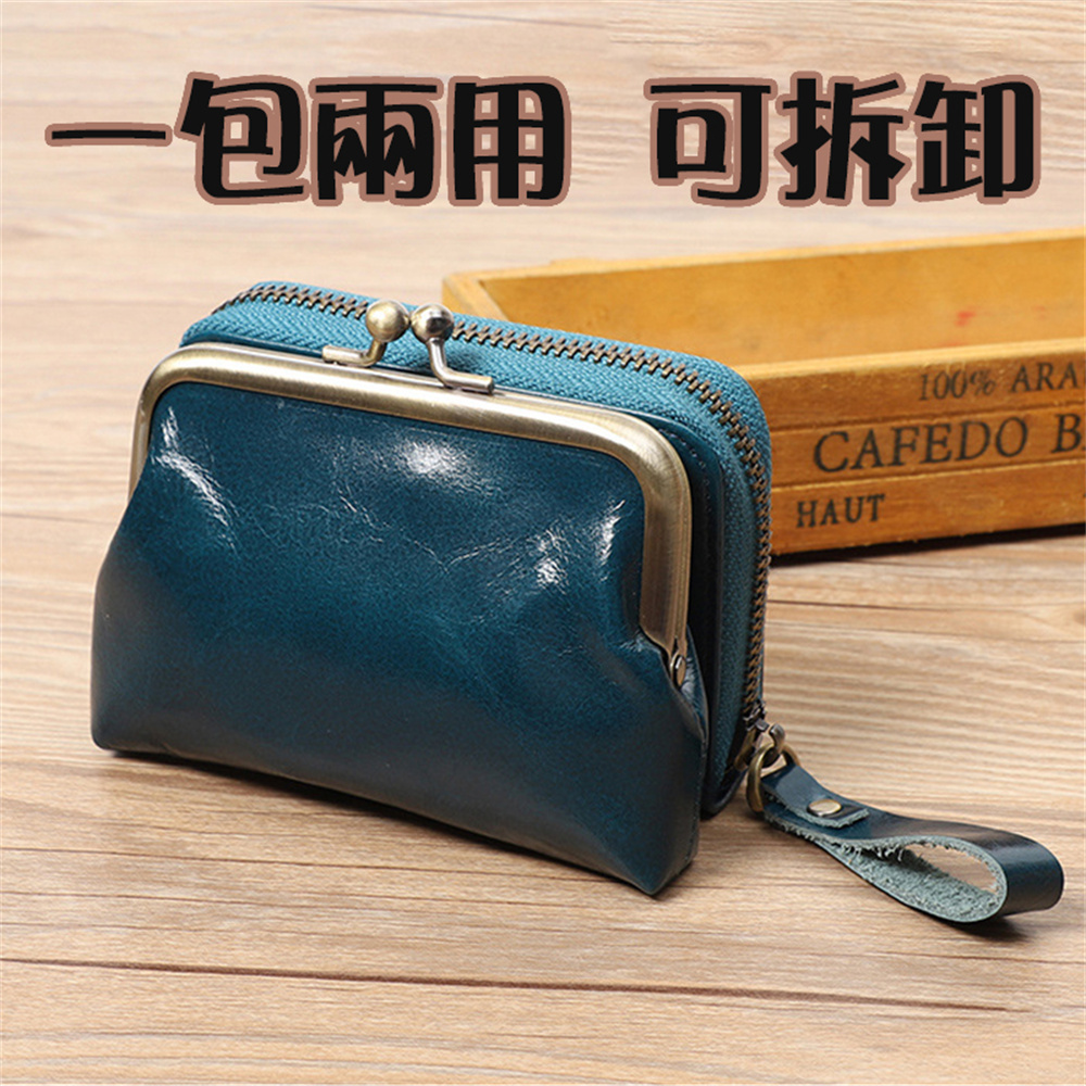 錢包女 真皮女士復古零錢包 零錢包女 硬幣包 頭層牛皮收納包 牛皮口金錢包 小錢包女 皮革零錢包 珠扣零錢包 075