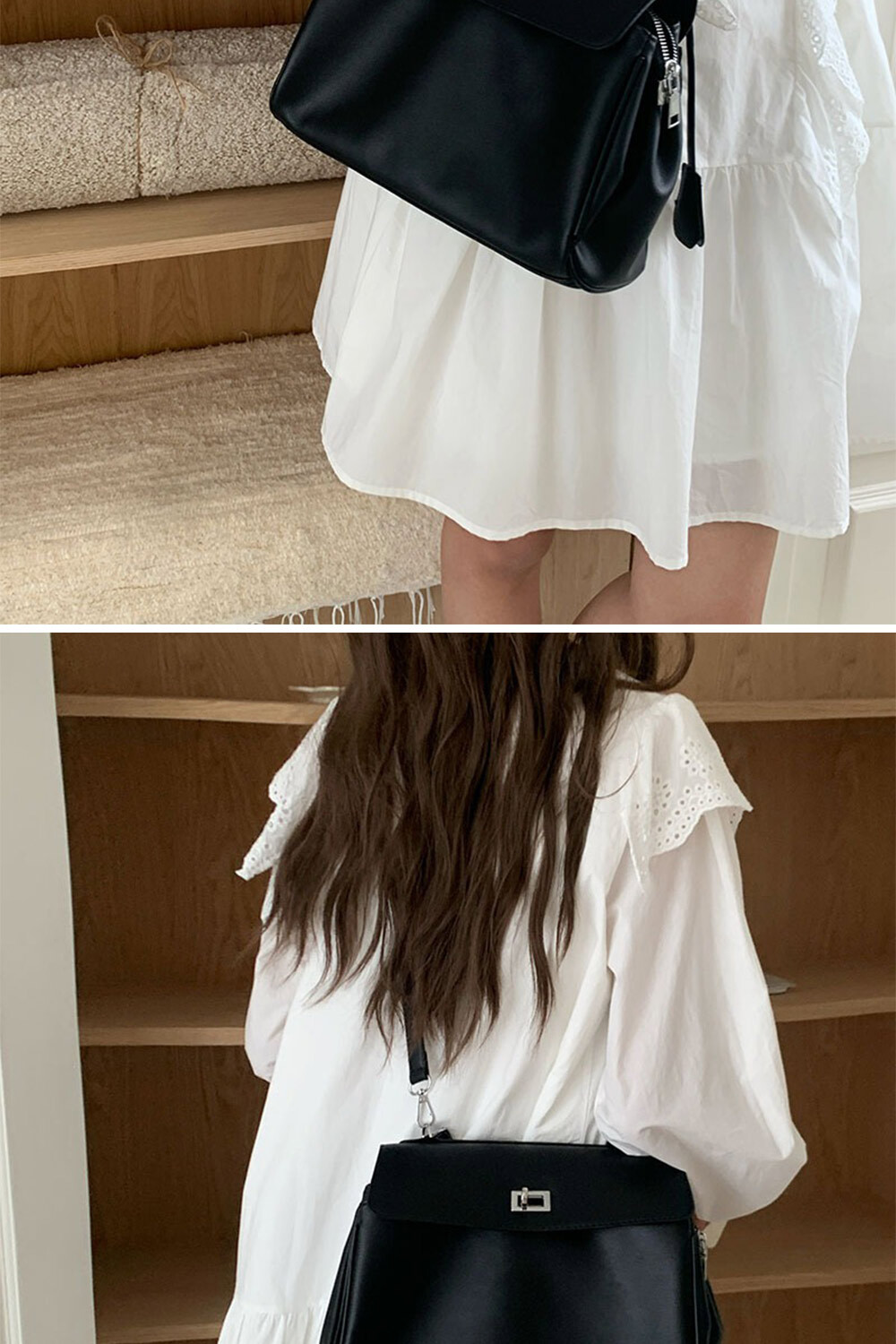 👜結構:主袋、拉鍊內貼袋、前袋(附背帶)