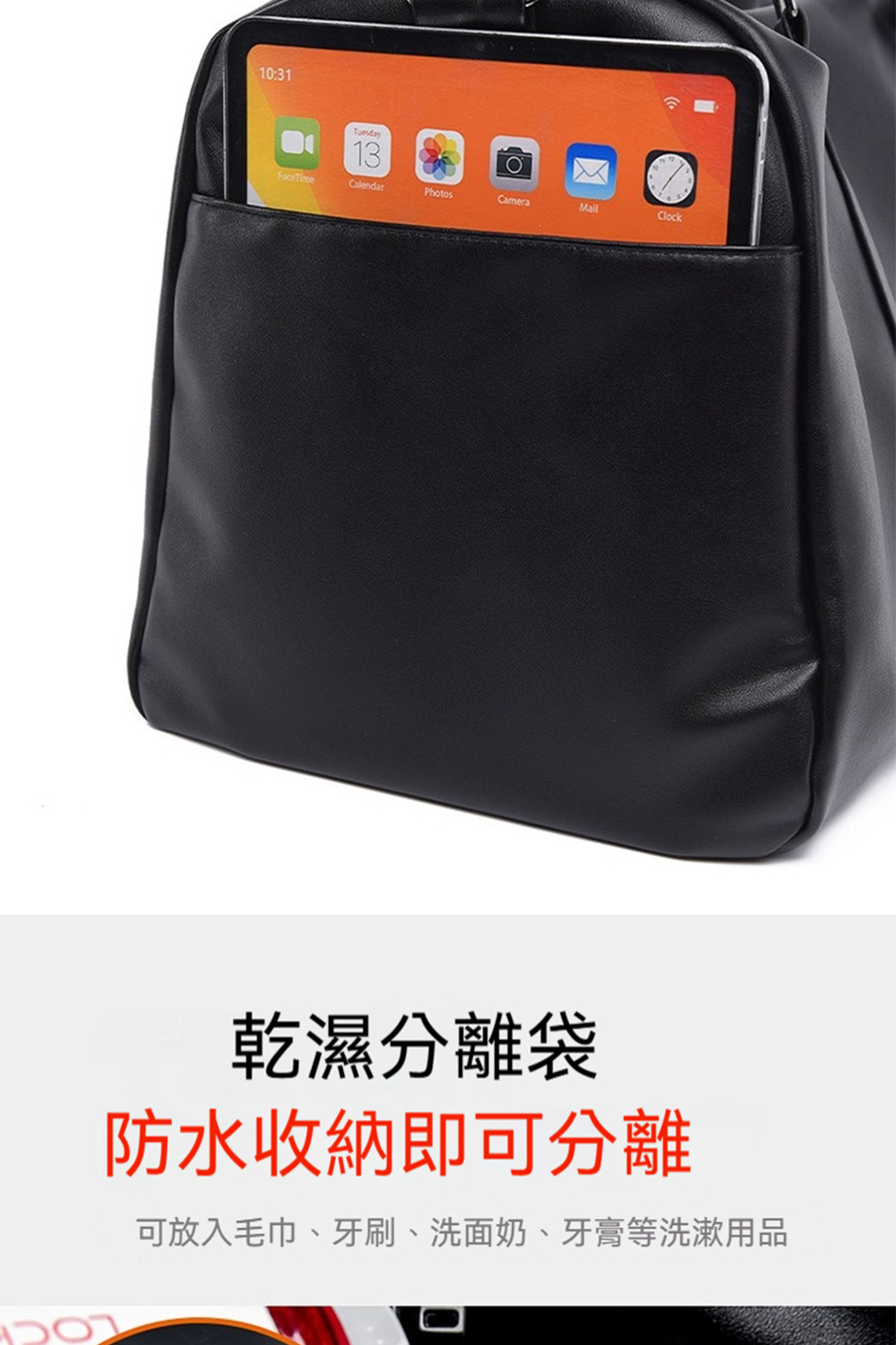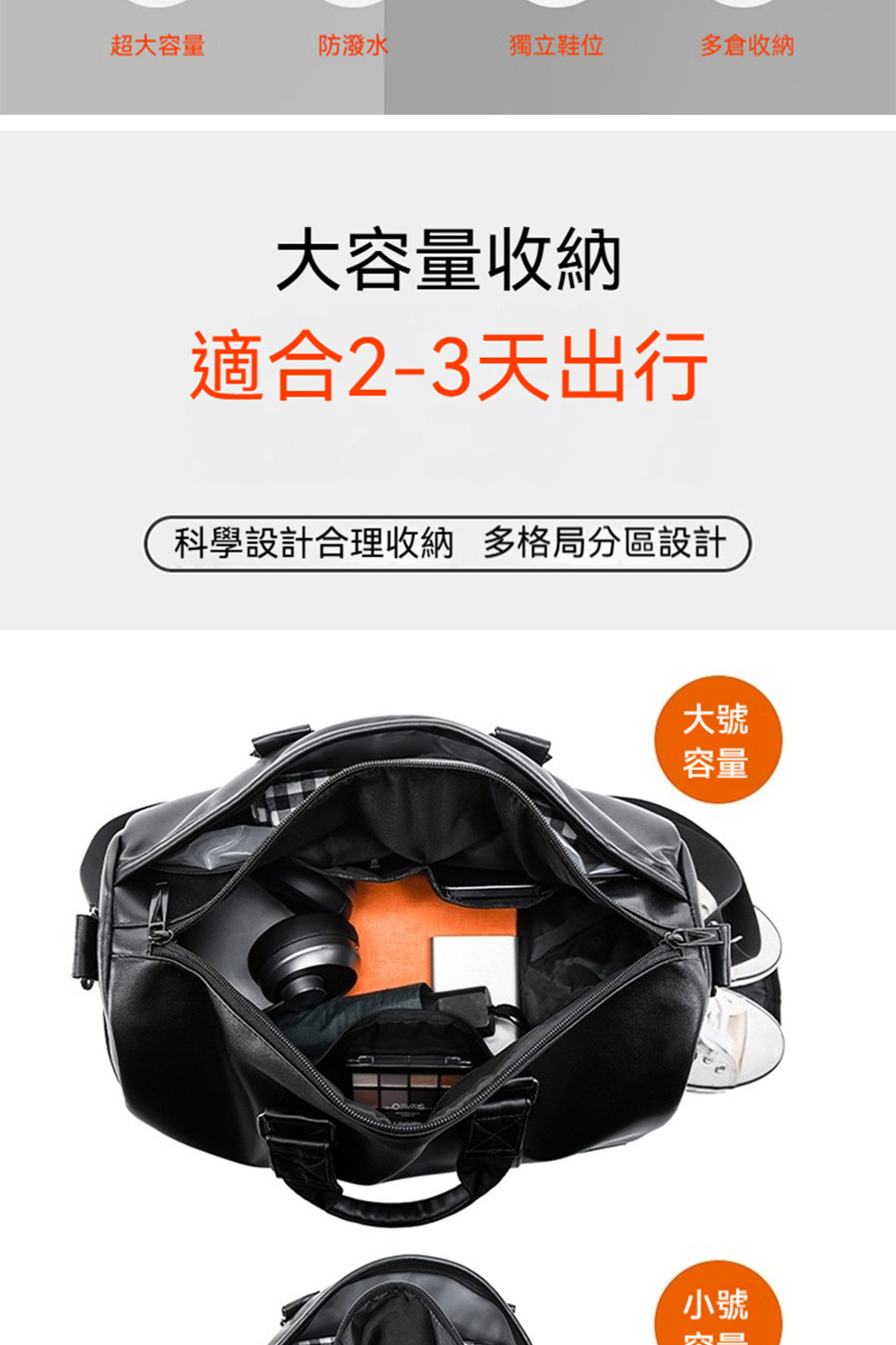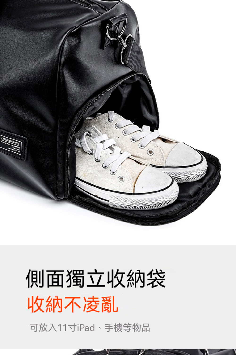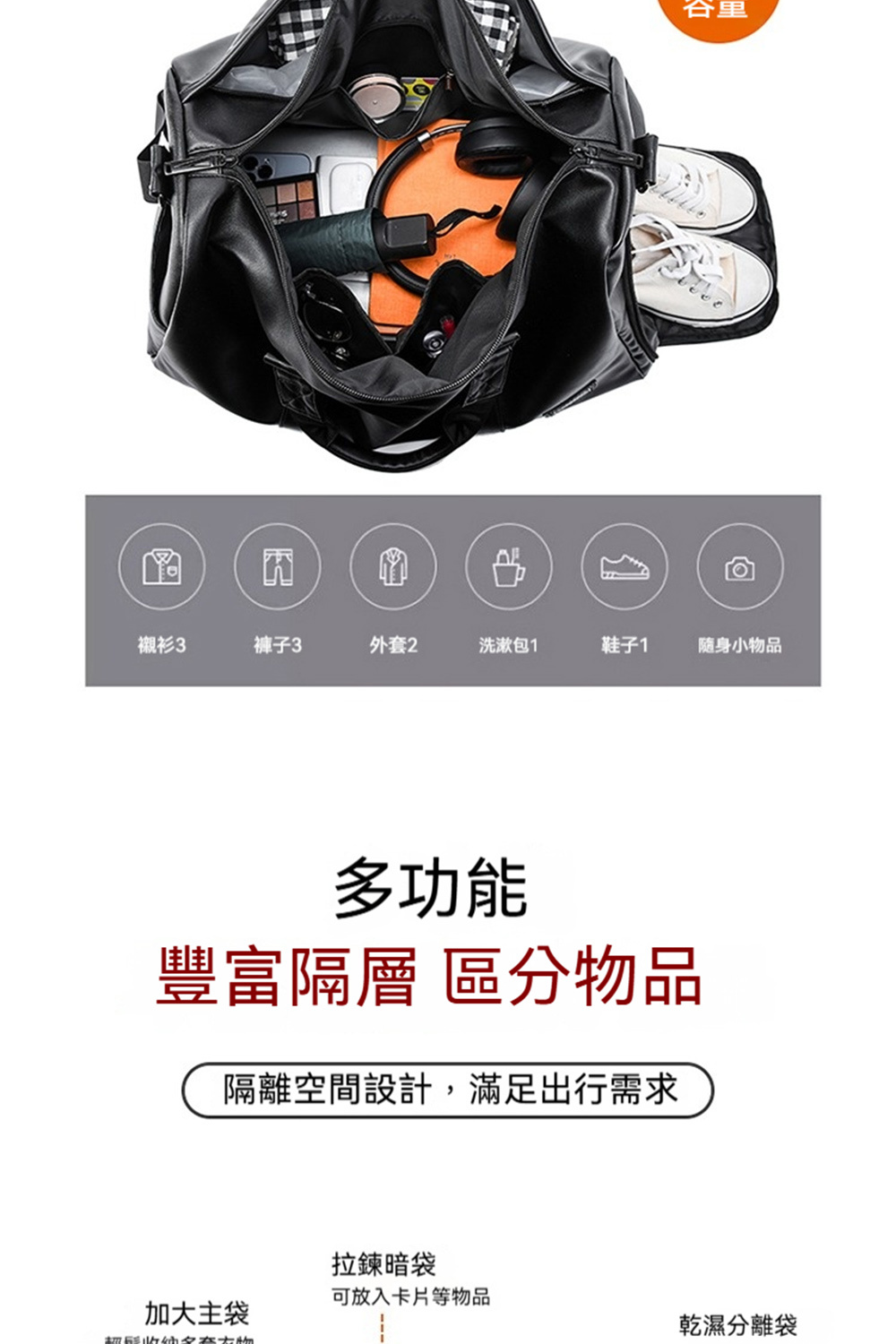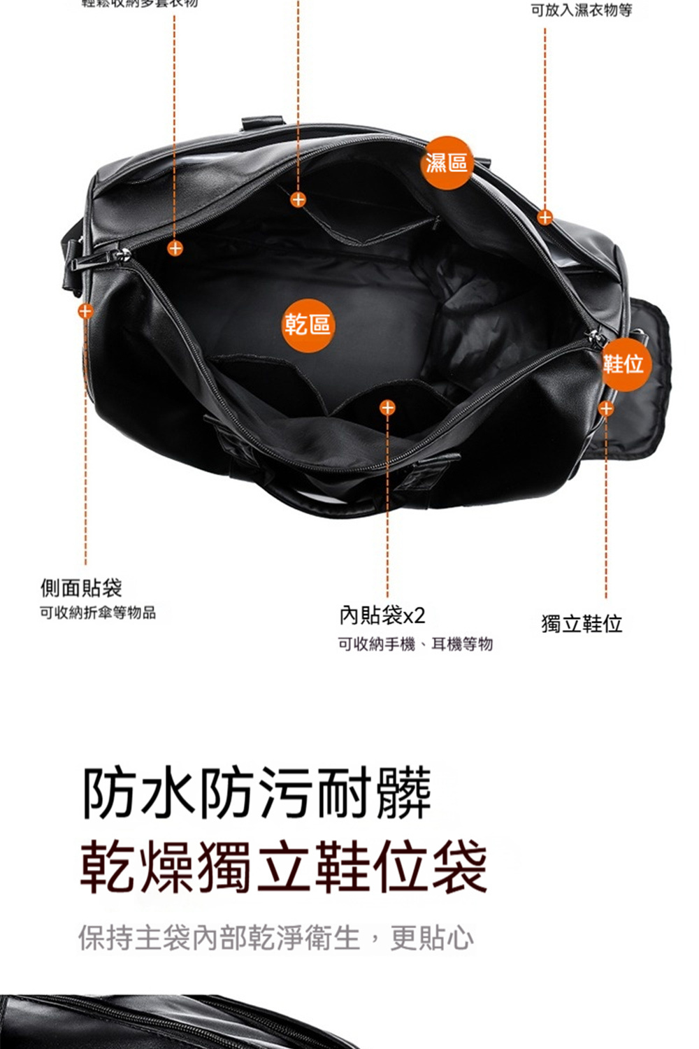 👜結構:主袋、內貼袋*2、拉鍊內貼袋、側邊插袋、拉鍊鞋倉、後幅乾溼分離袋