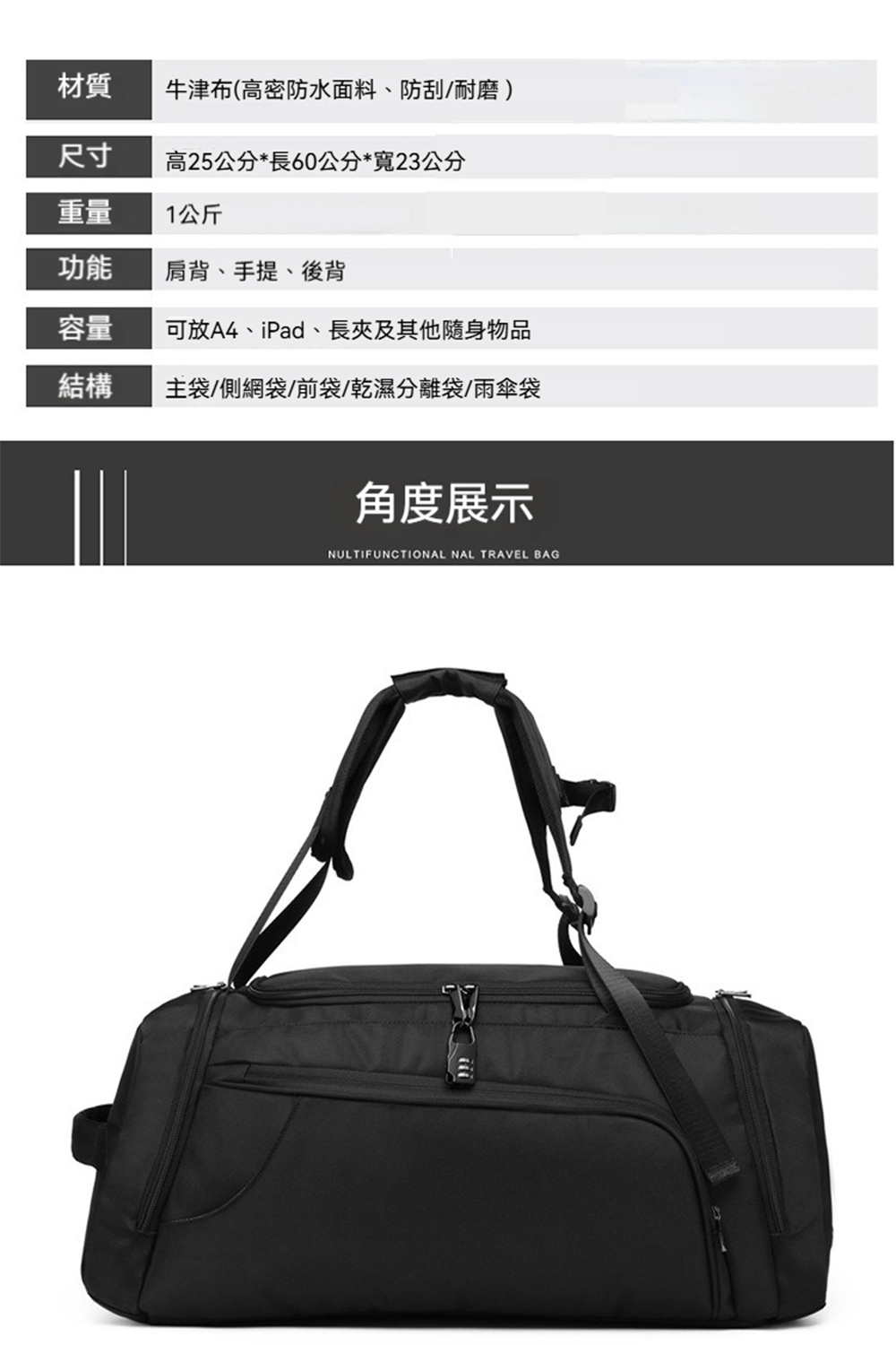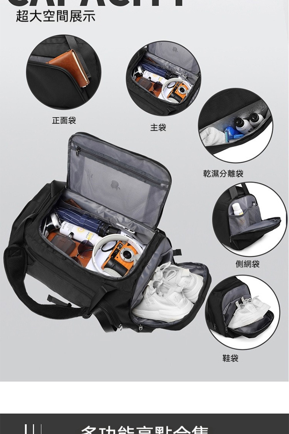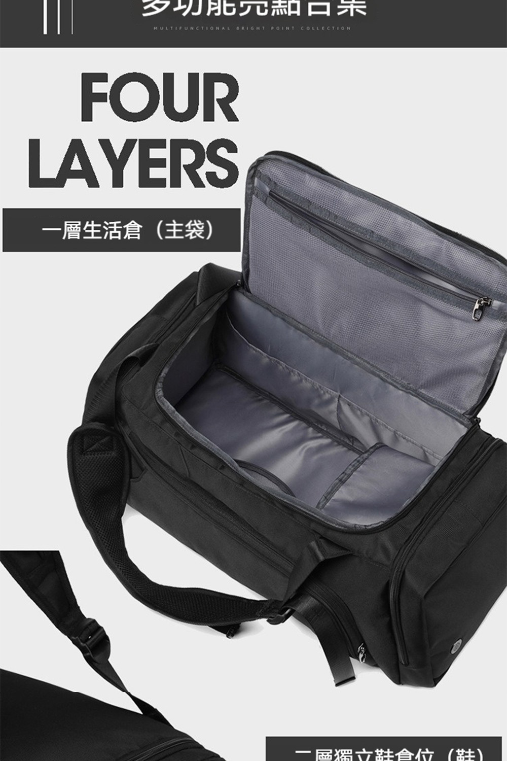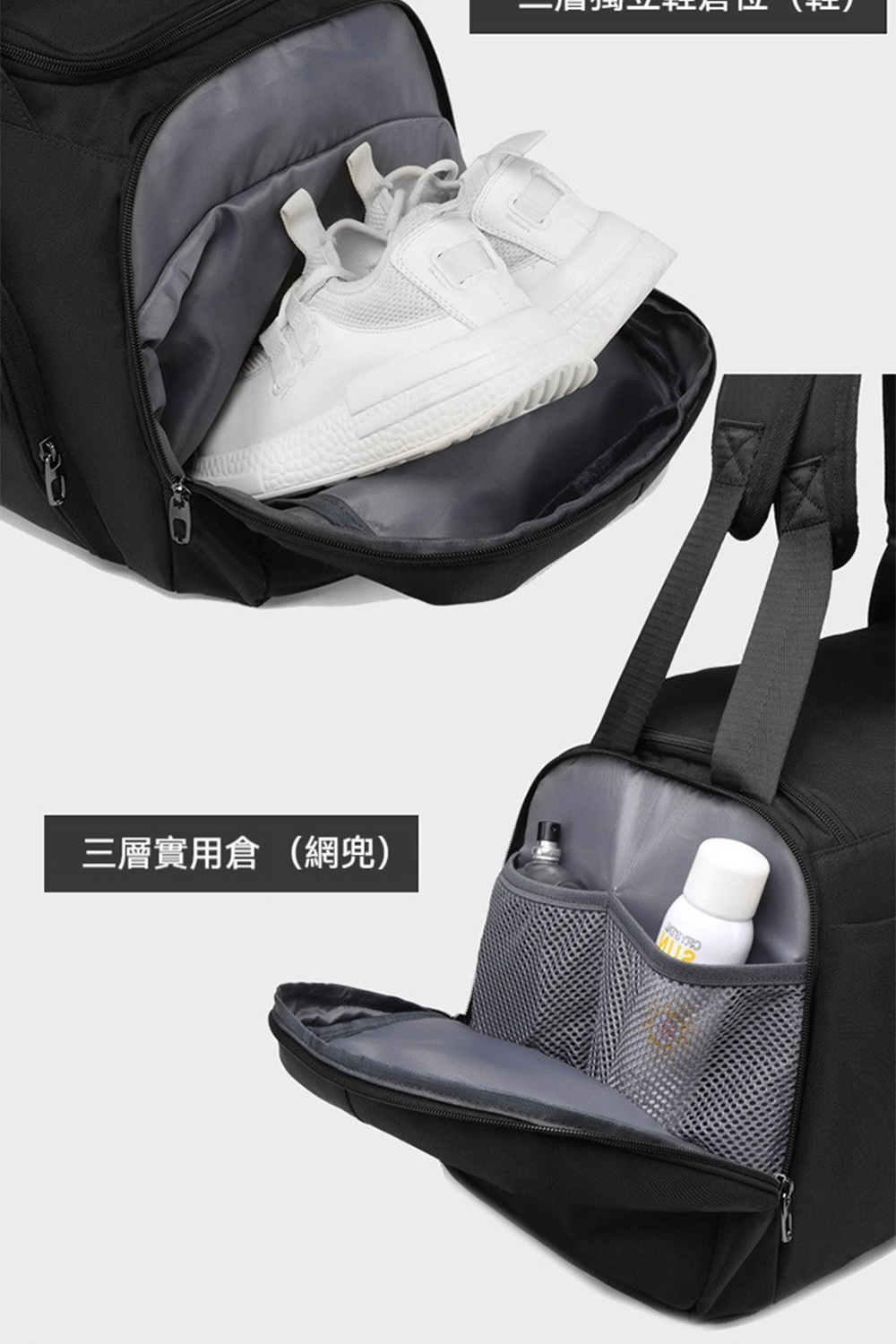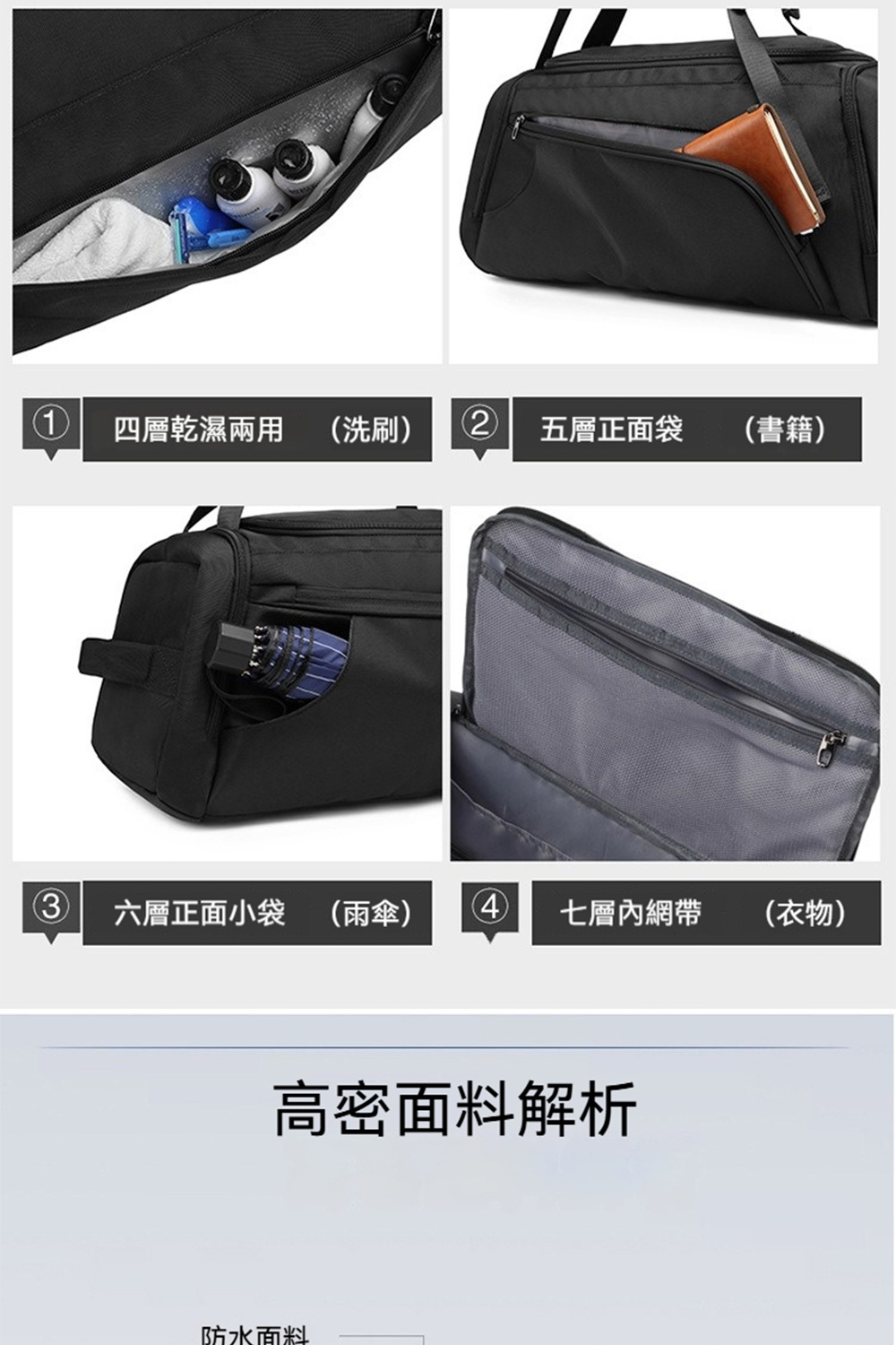 👜結構:主袋/側網袋/前袋/乾濕分離袋/雨傘袋