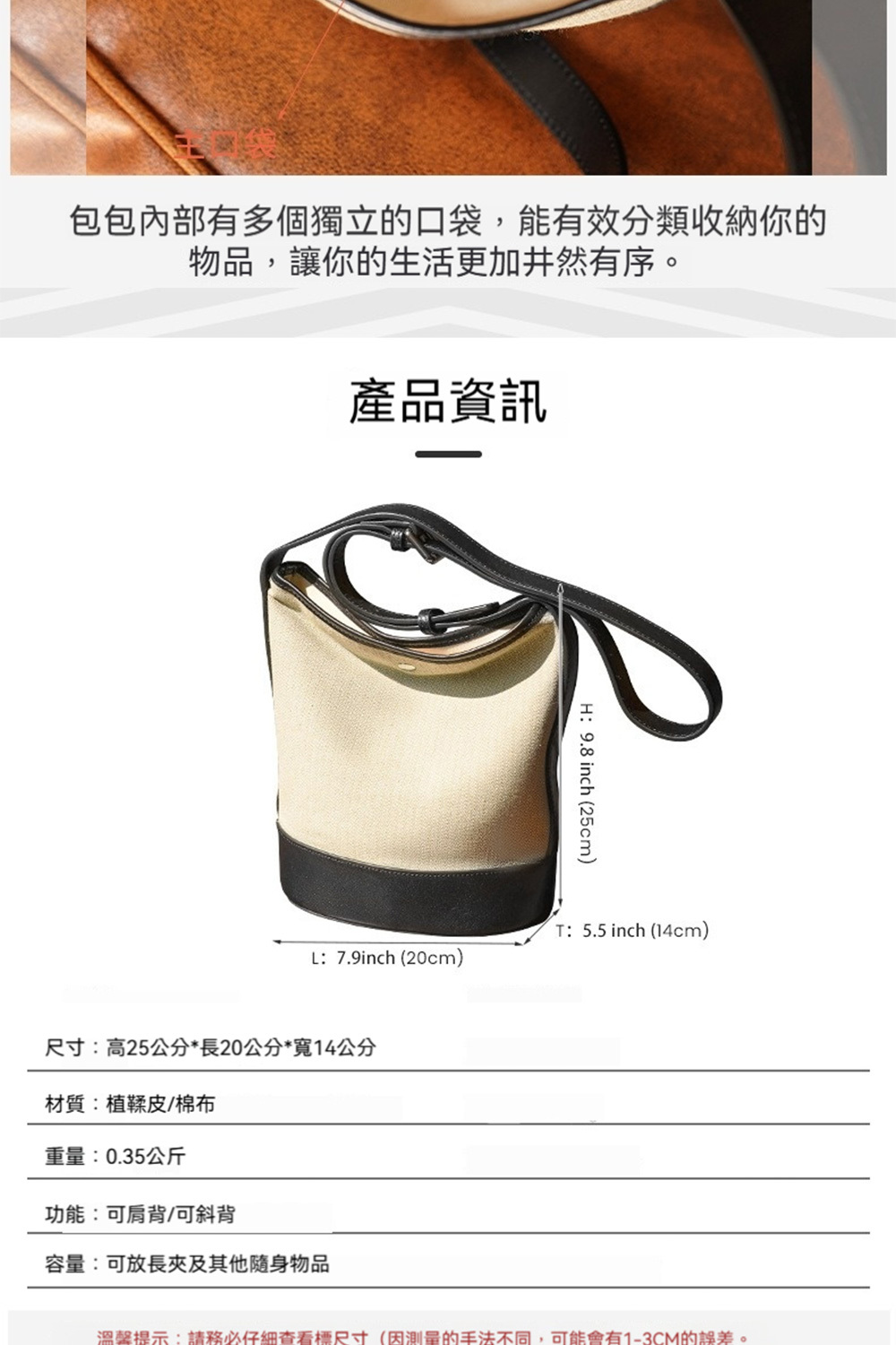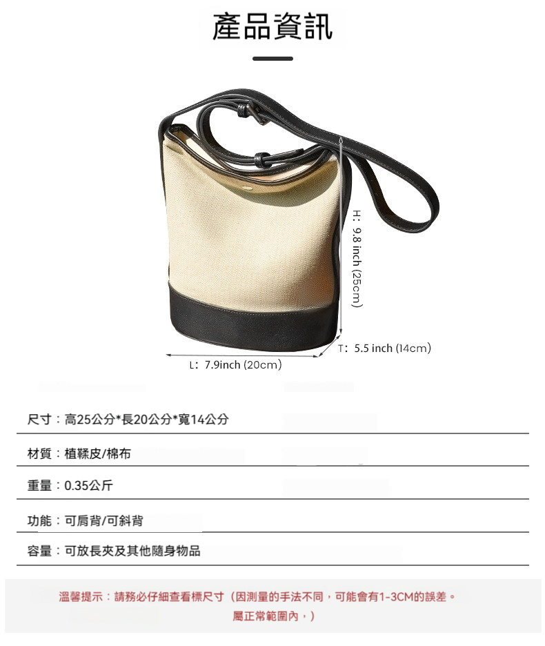 👜材質:植鞣皮/棉布