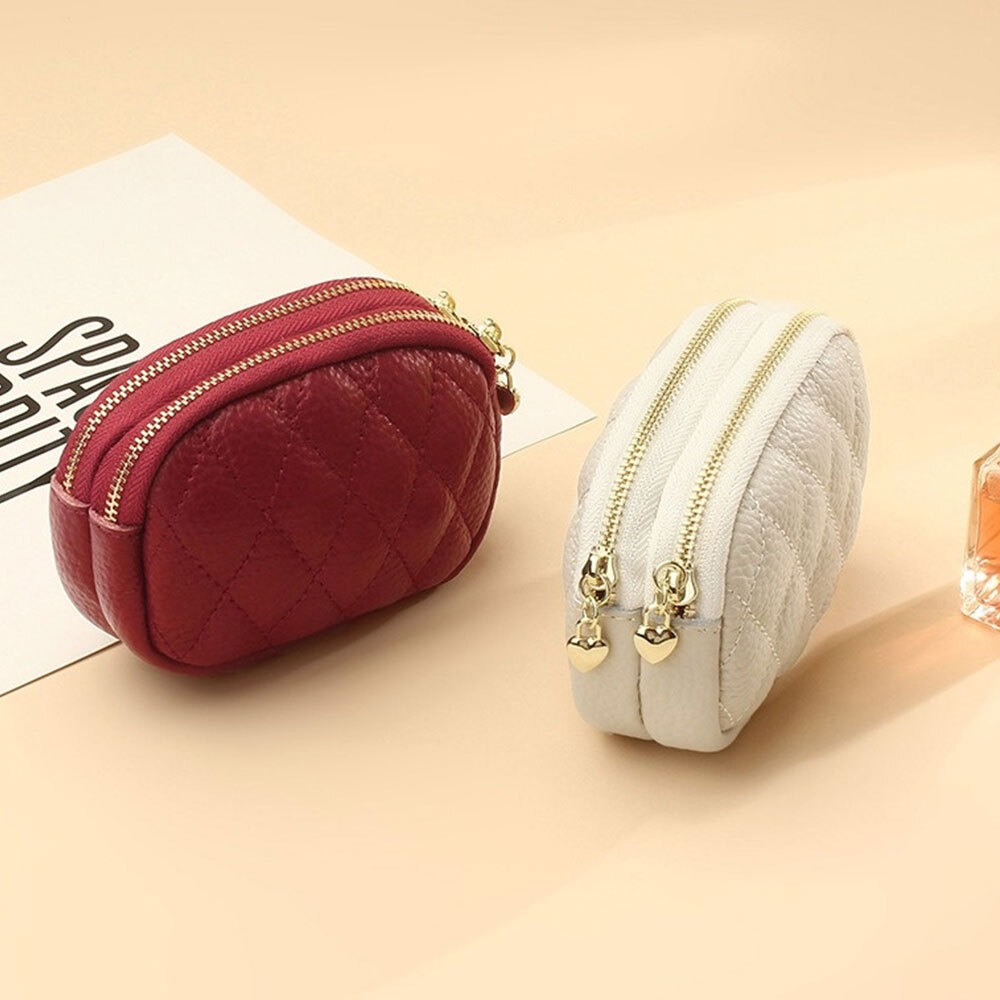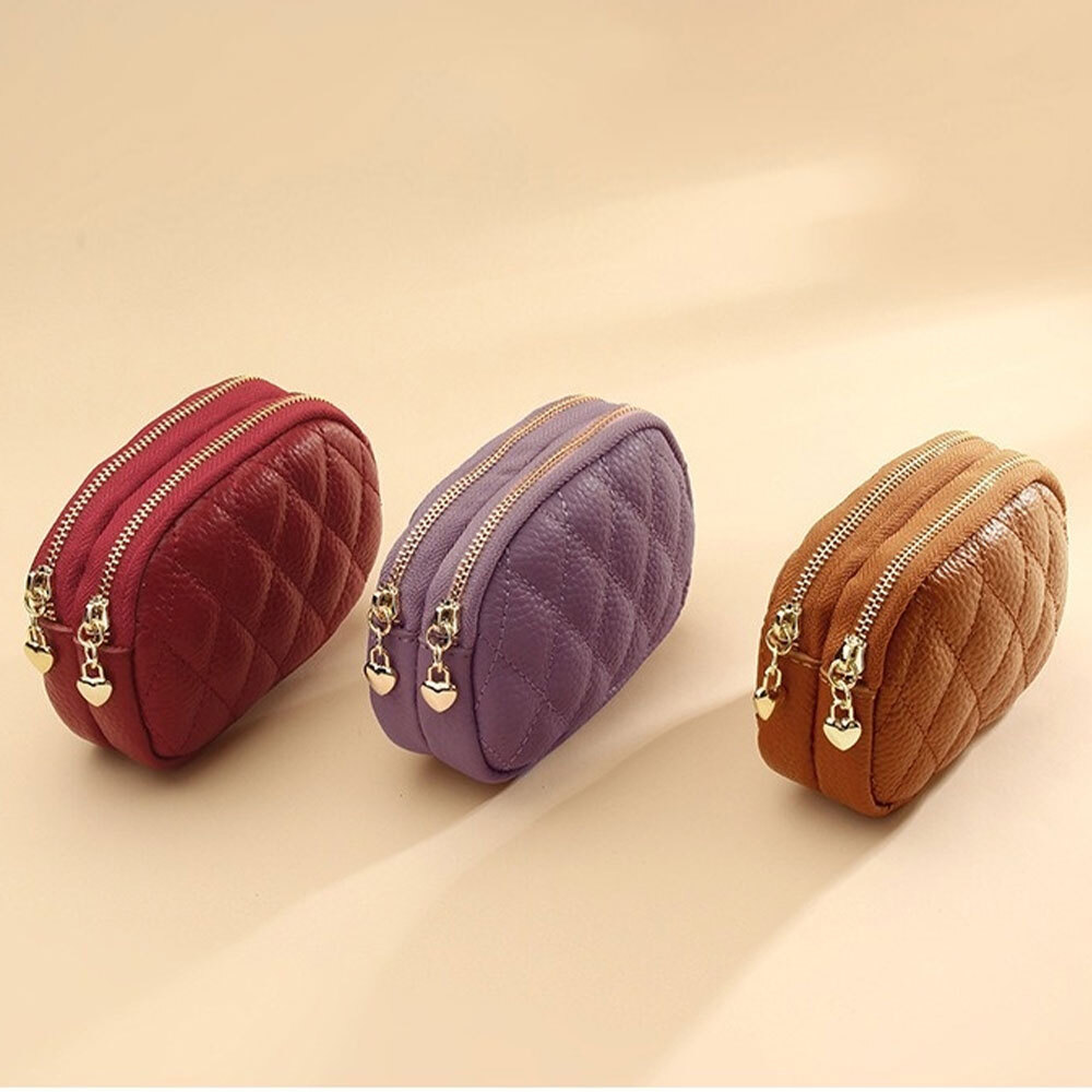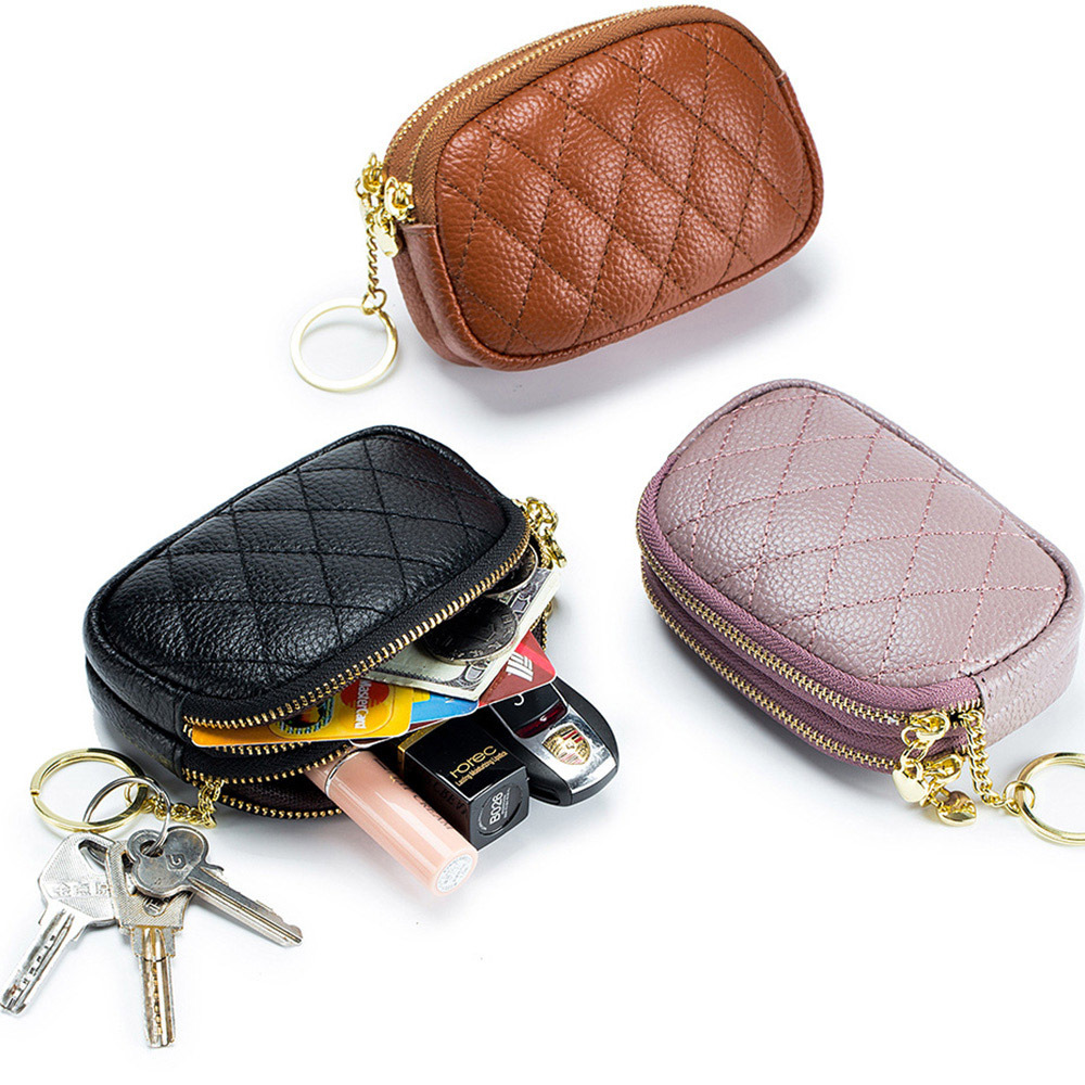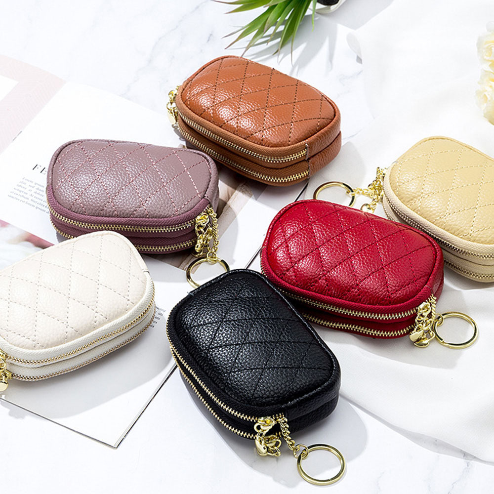 雙拉鏈零錢包 魚子醬零錢包 零錢包 錢包女 牛皮零錢包 真皮零錢包 小錢包 女用錢包 菱格零錢包 可愛零錢包 015