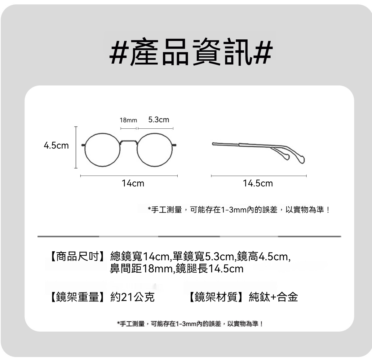 👜商品尺吋:總鏡寬14cm,單鏡寬5.3cm,鏡高4.5cm,鼻間距18mm,鏡腿長14.5cm
