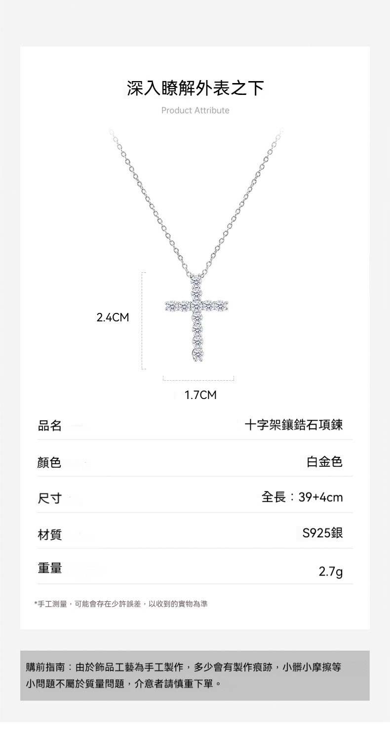 👜商品尺吋:十字架-長2.4公分*寬1.7公分,鏈長39公分,延長鏈4公分