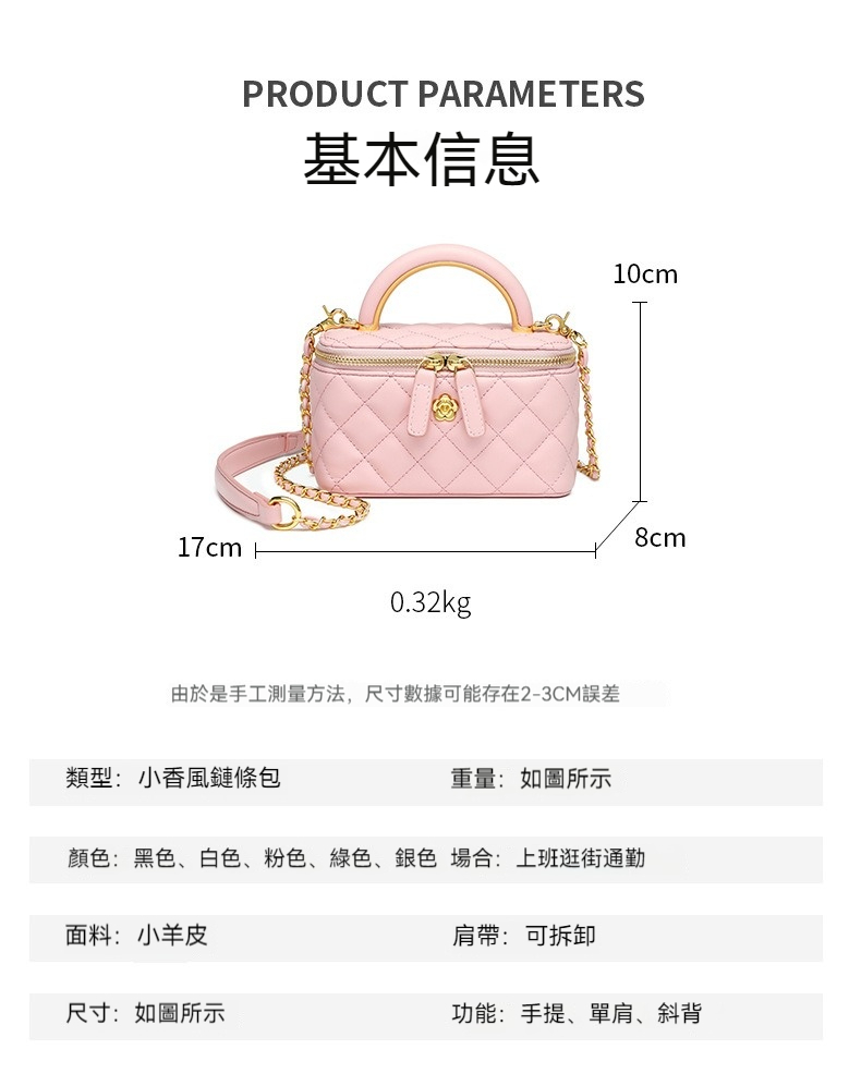 👜容量:可放短夾、手機、口紅、粉餅等隨身物品