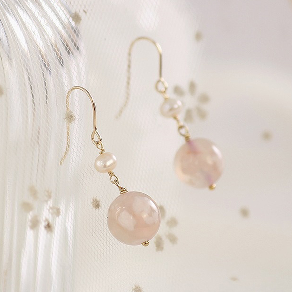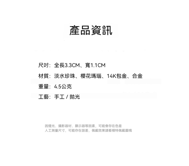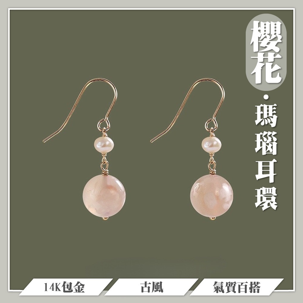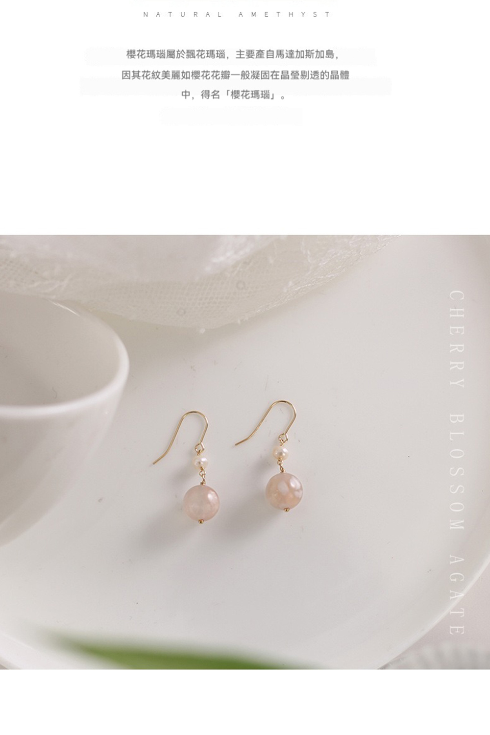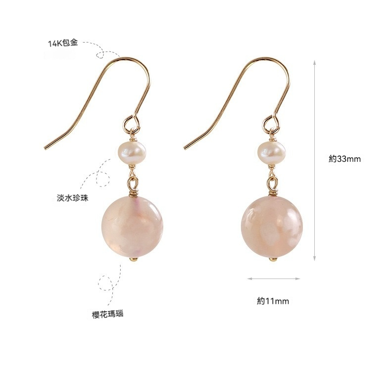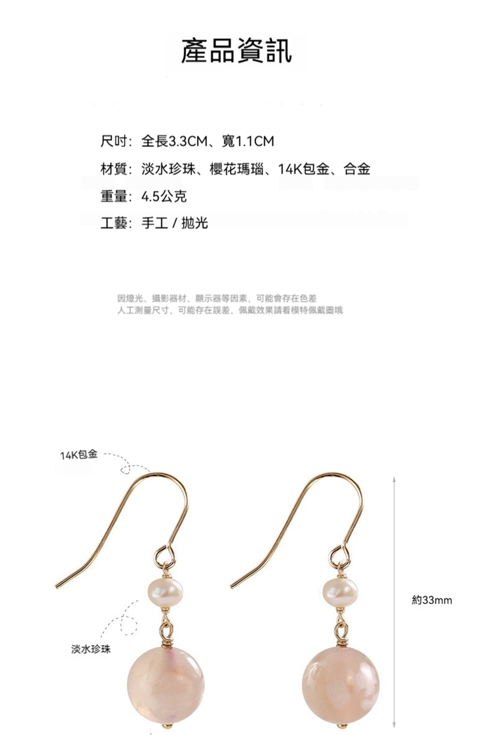 ✨ 材質:淡水珍珠、櫻花瑪瑙、14K包金、合金
