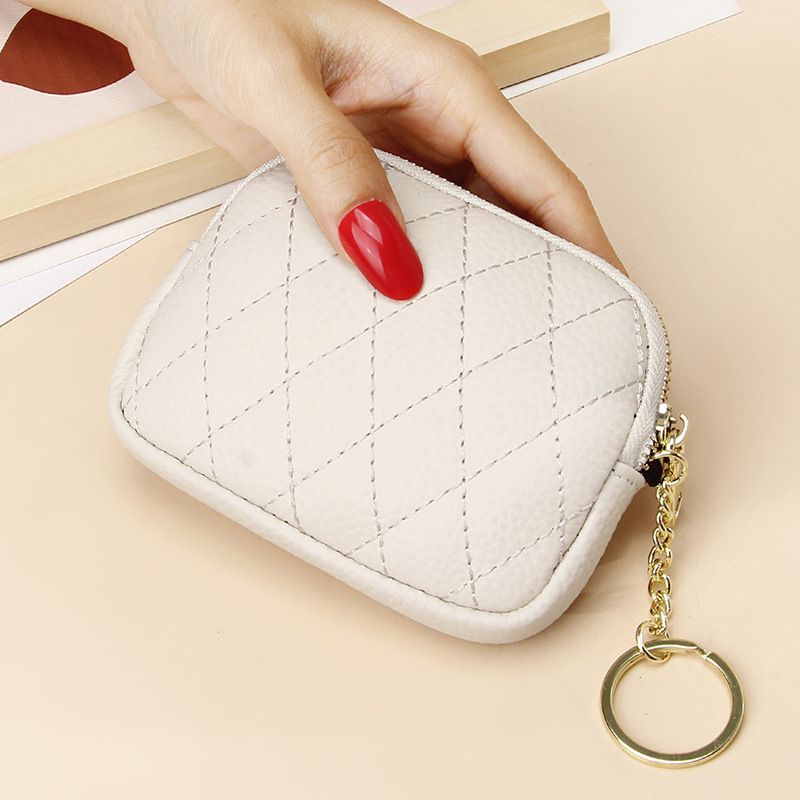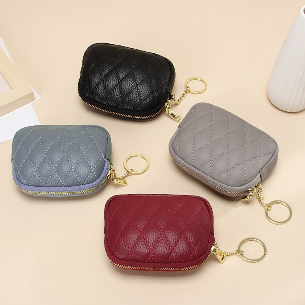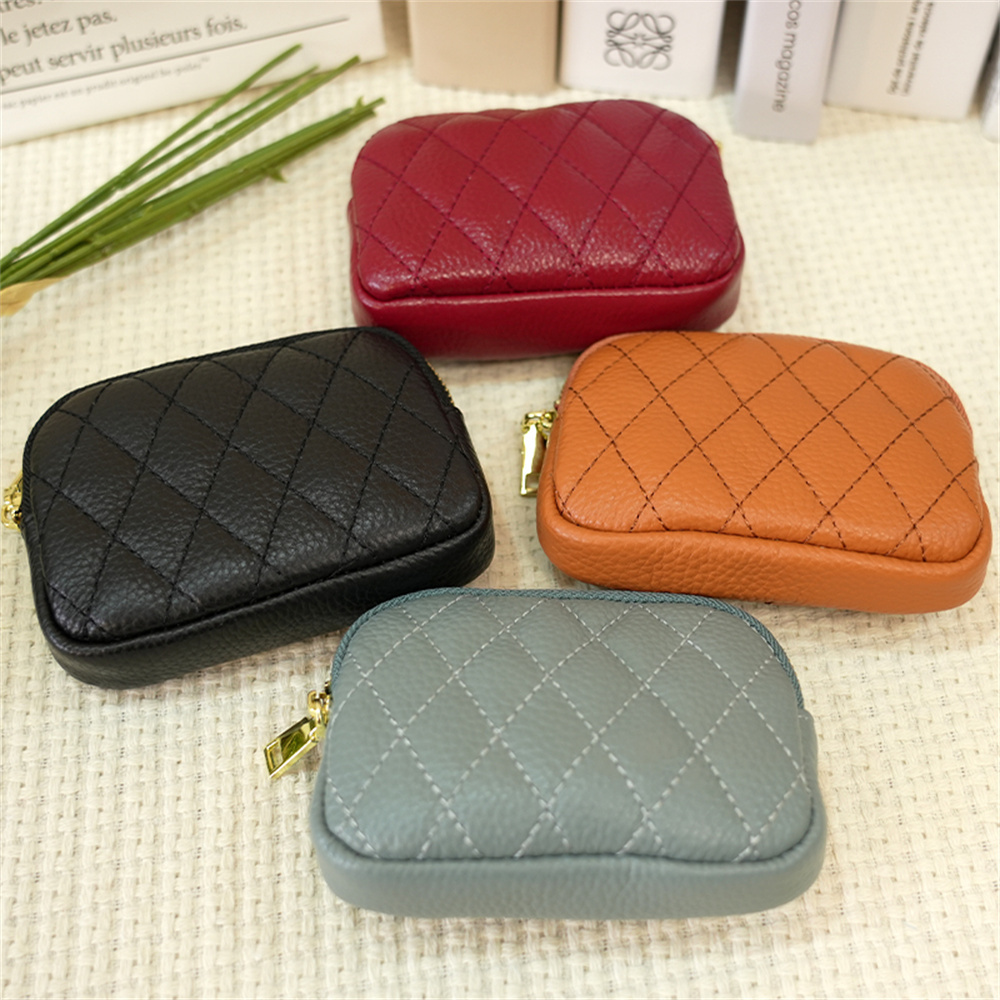 錢包女 零錢包 雙拉鏈零錢包 真皮零錢包 牛皮零錢包 錢包 菱格零錢包 魚子醬零錢包 大零錢包 女生錢包 067