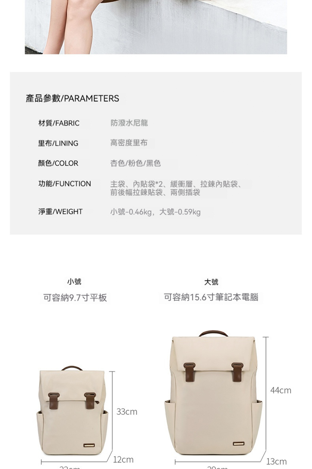 👜容量:大號可放A4、15.6吋筆電;小號可放9.7吋平板;皆可放長夾及其他隨身物品