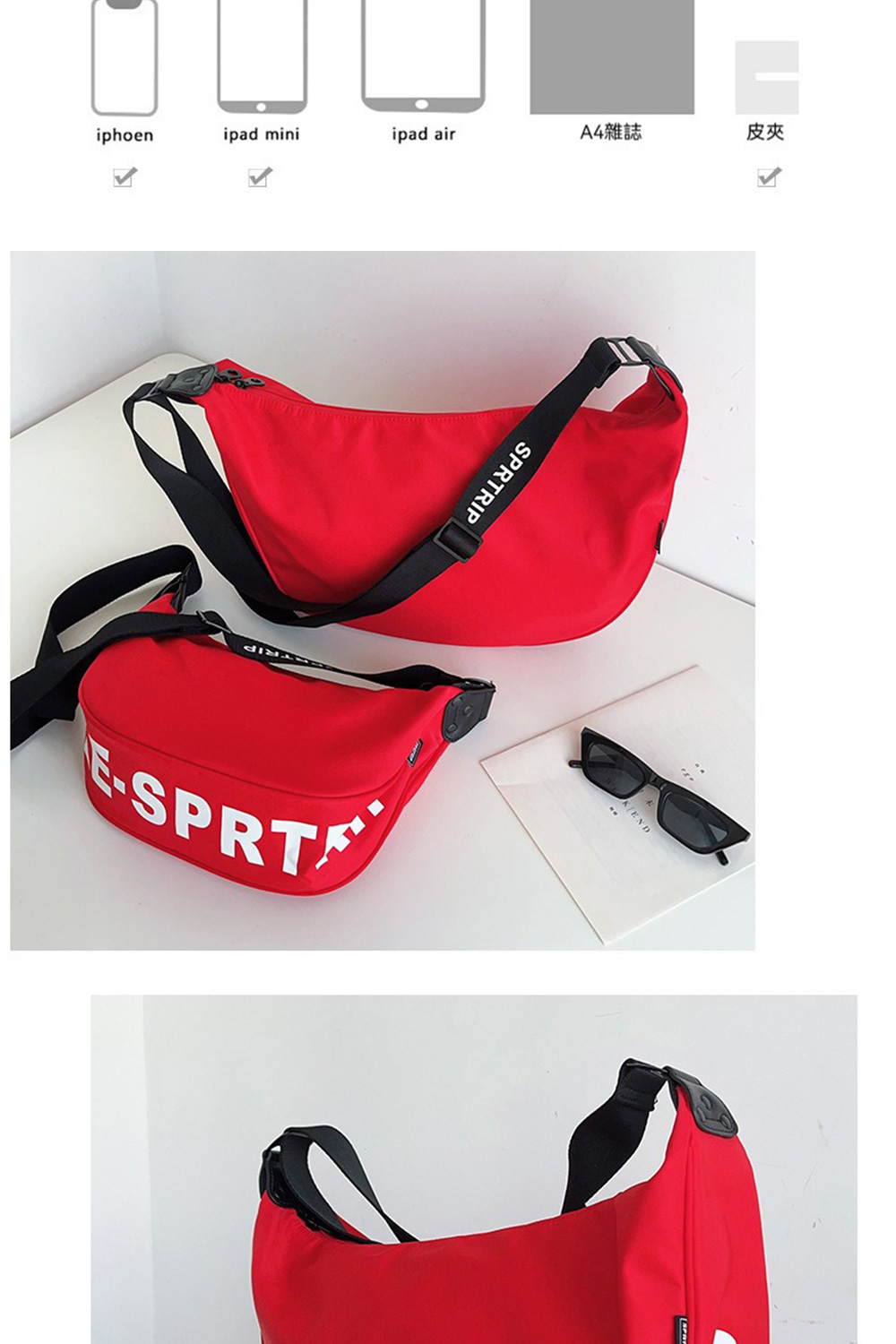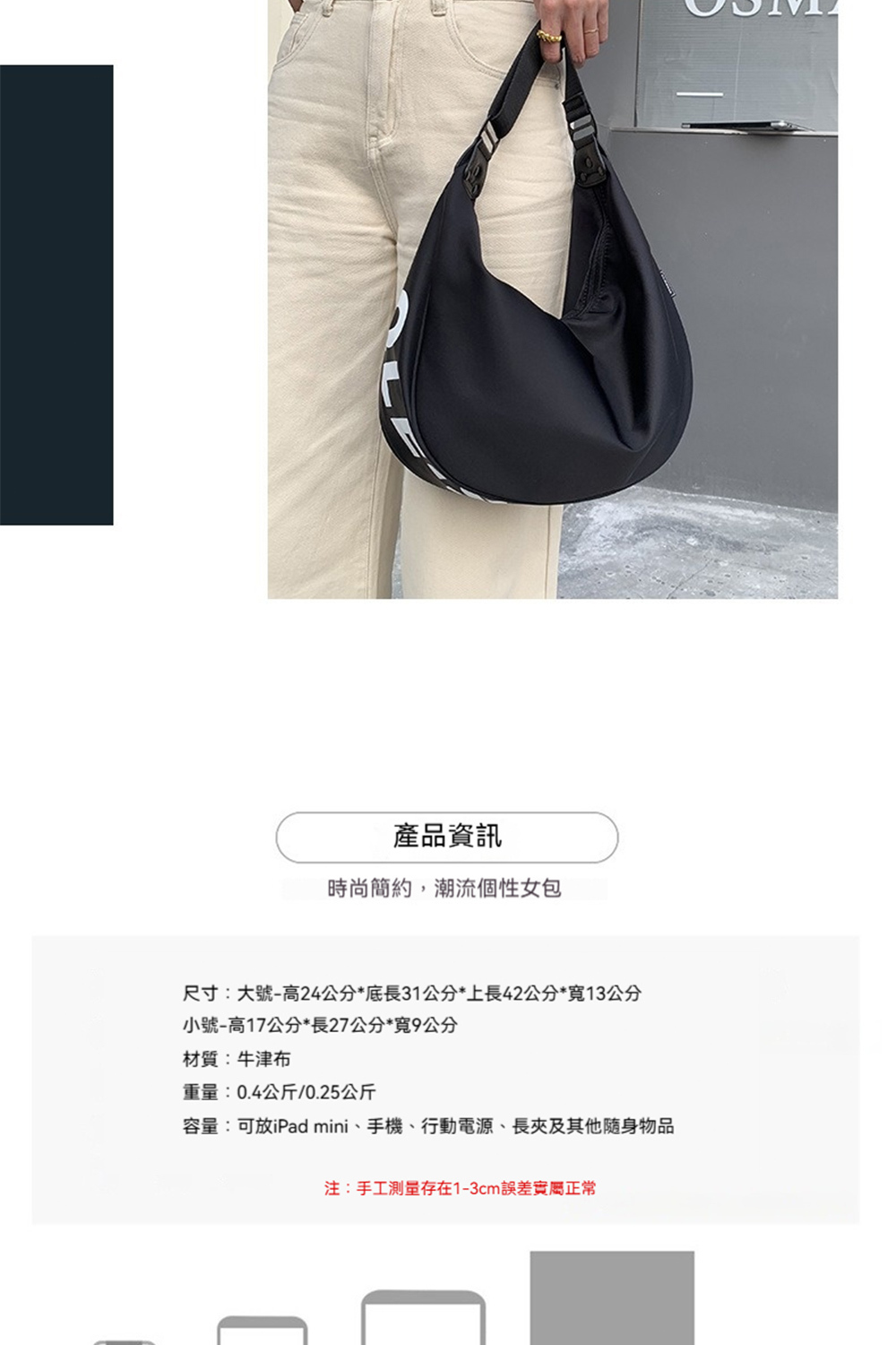 👜容量:可放iPad mini、手機、行動電源、長夾及其他隨身物品