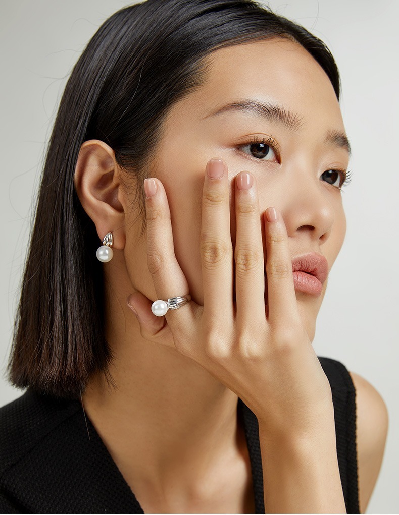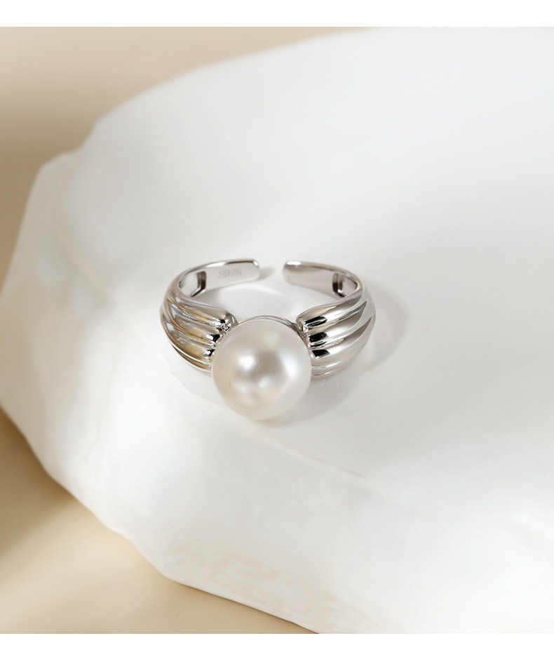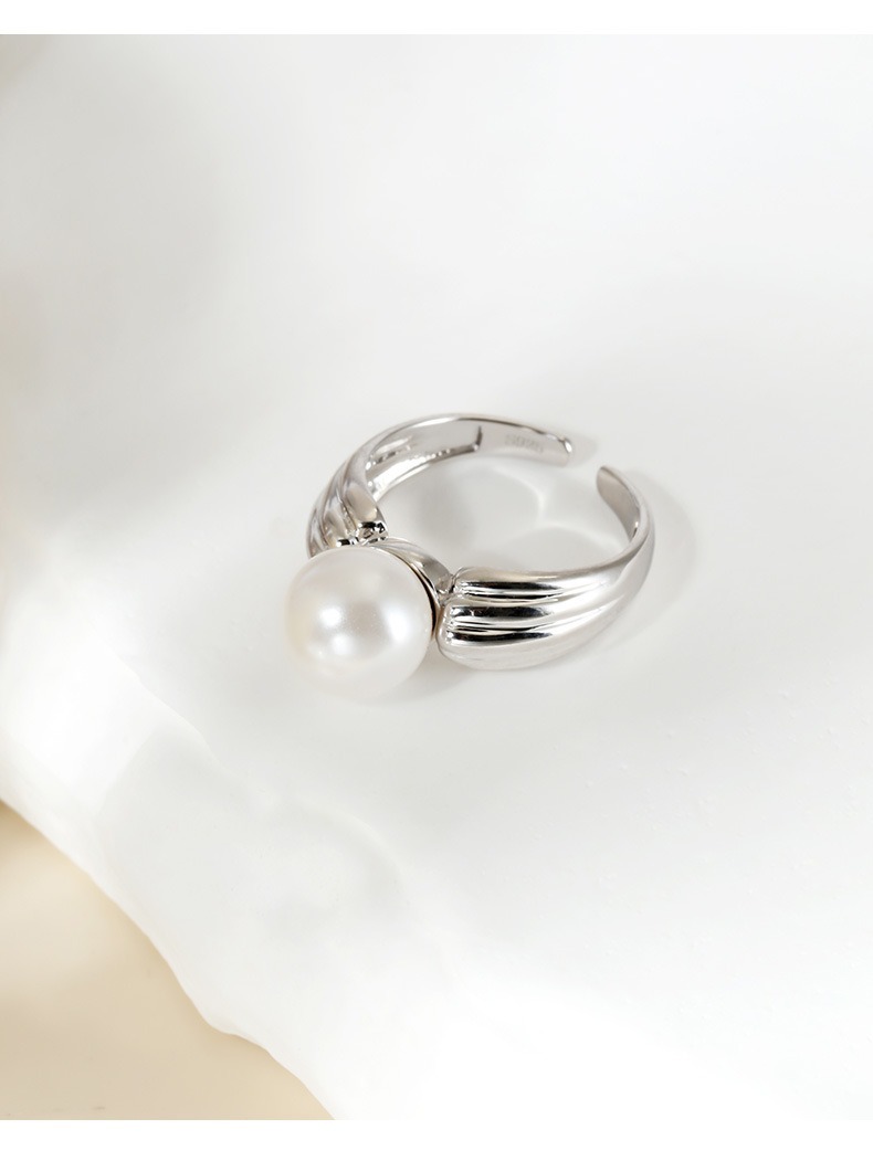 戒指女 925 純銀戒指 銀戒指 情侶戒指 可調式 開口戒指 簡約ins風 珍珠戒指 銀飾 情人節禮物 生日禮物 159
