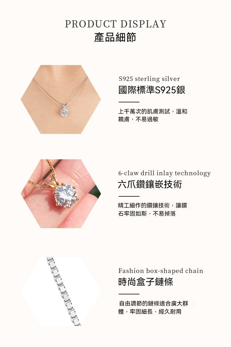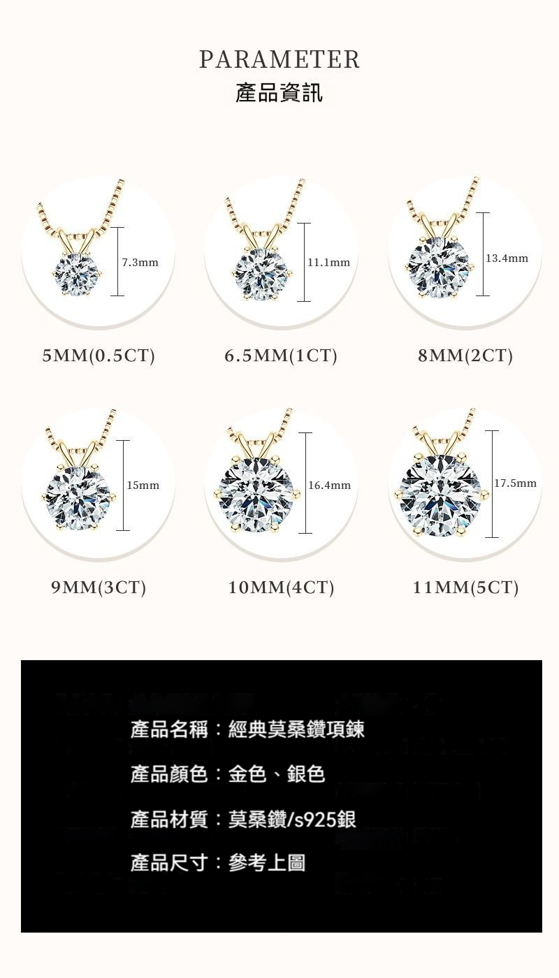 ✨ 商品尺吋:鏈長44cm,吊墜長-7.3mm(0.5ct),11.1mm(1ct),13.4mm(2ct),15mm(3ct),16.4mm(4ct),17.5mm(5ct)