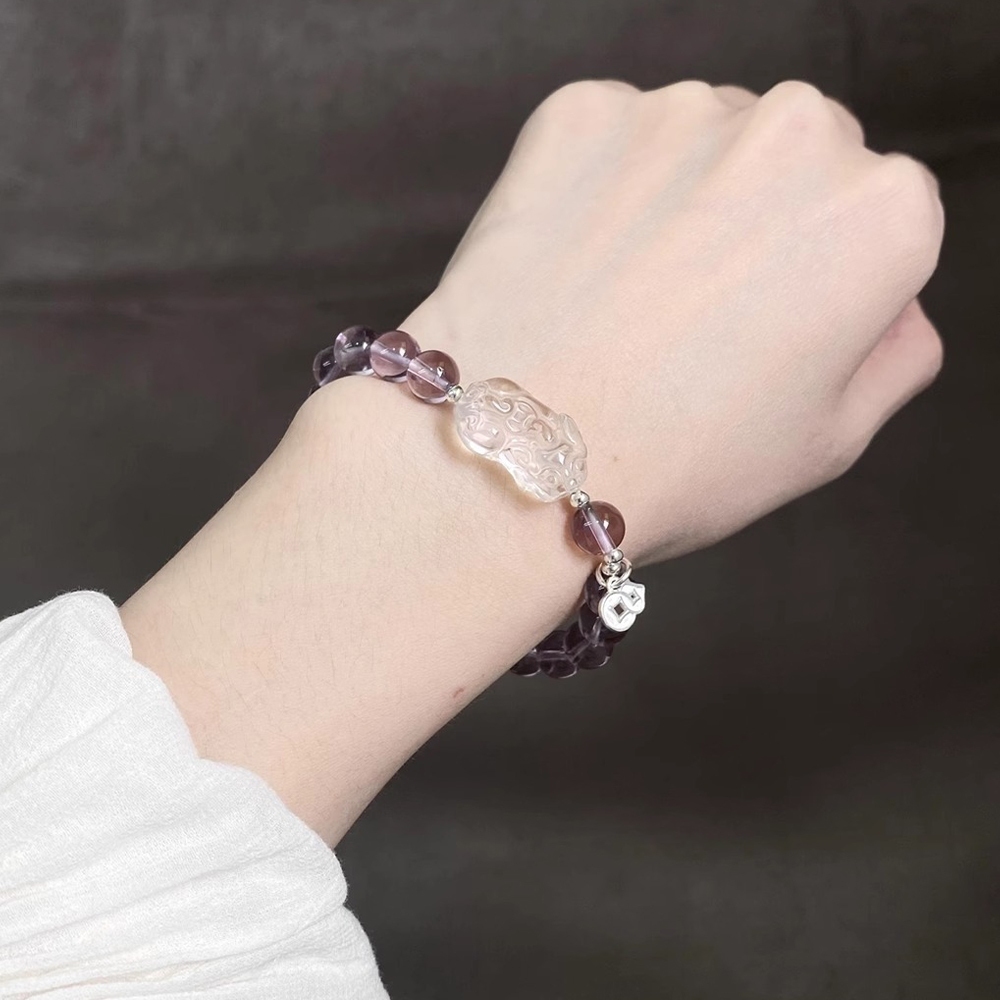 ✨ 商品尺吋:手圍15-19公分可選(可伸縮),紫水晶8mm,白水晶貔貅19*14mm,葫蘆9*6mm