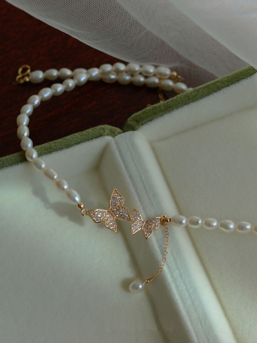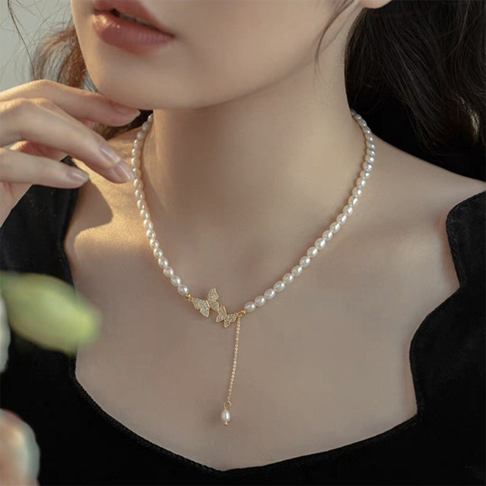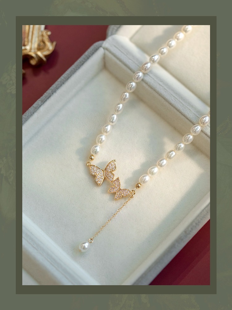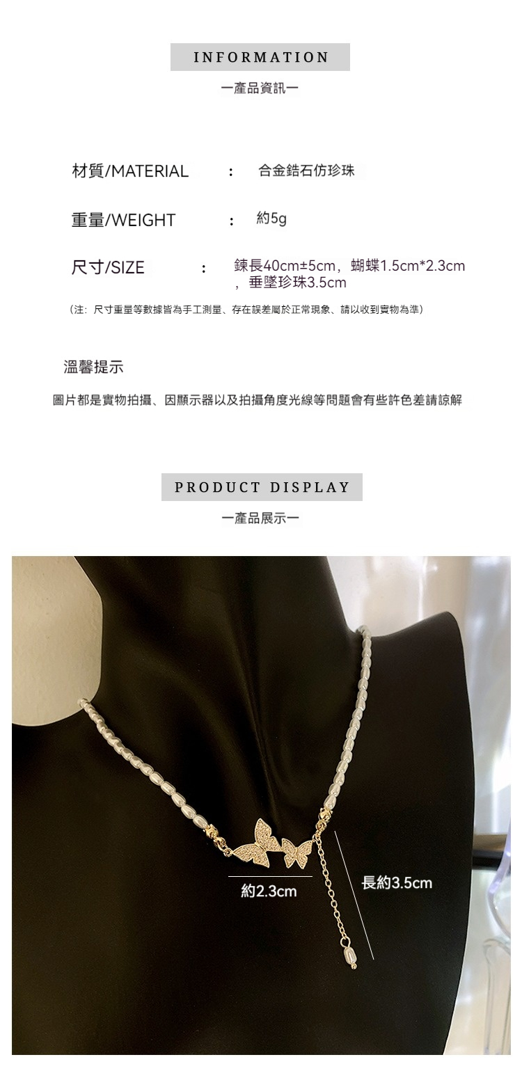 👜 商品尺吋:鍊長40cm±5cm,蝴蝶1.5cm*2.3cm,垂墜珍珠3.5cm