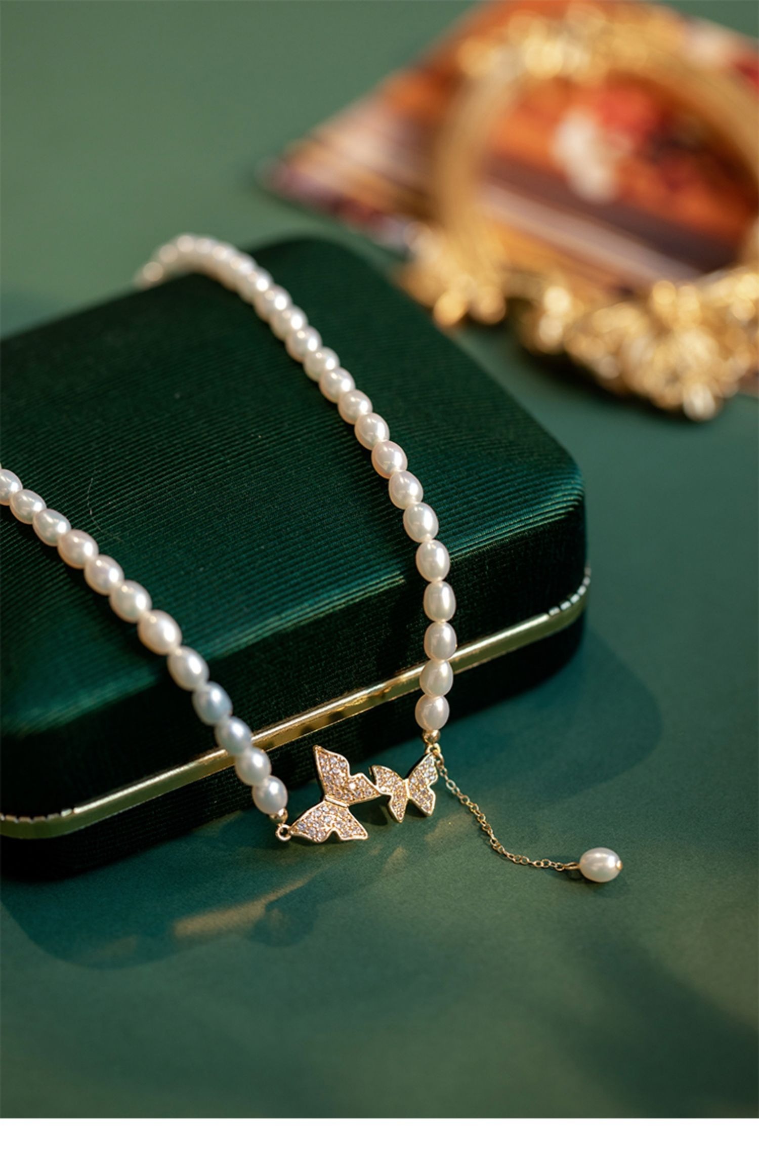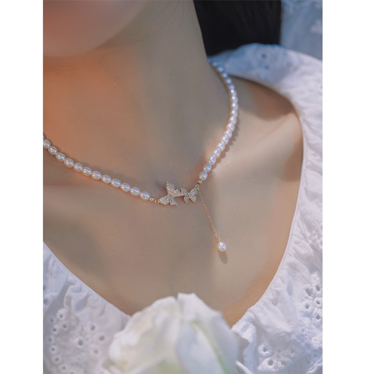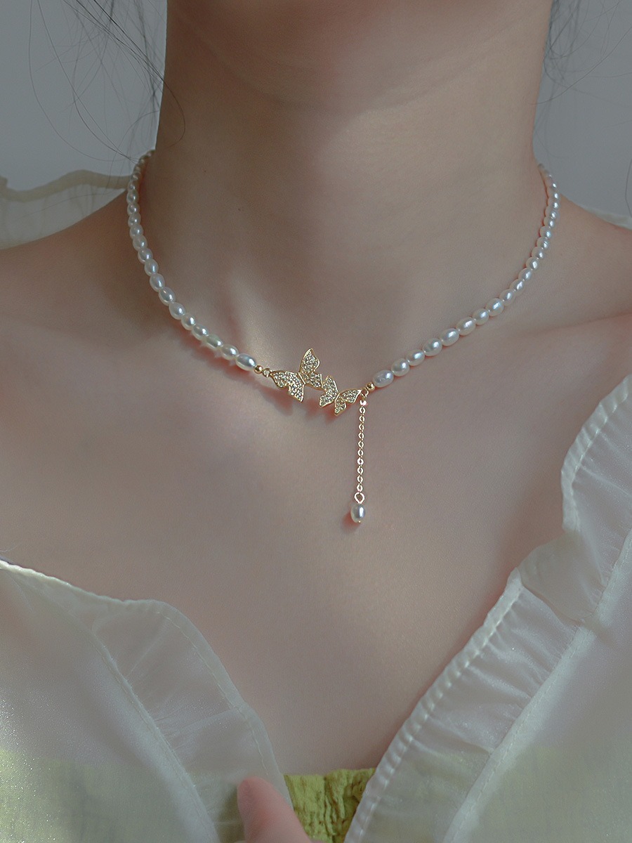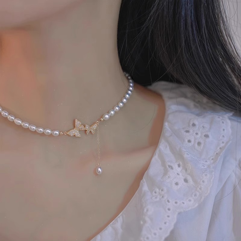 👜 商品尺吋:鍊長40cm±5cm,蝴蝶1.5cm*2.3cm,垂墜珍珠3.5cm