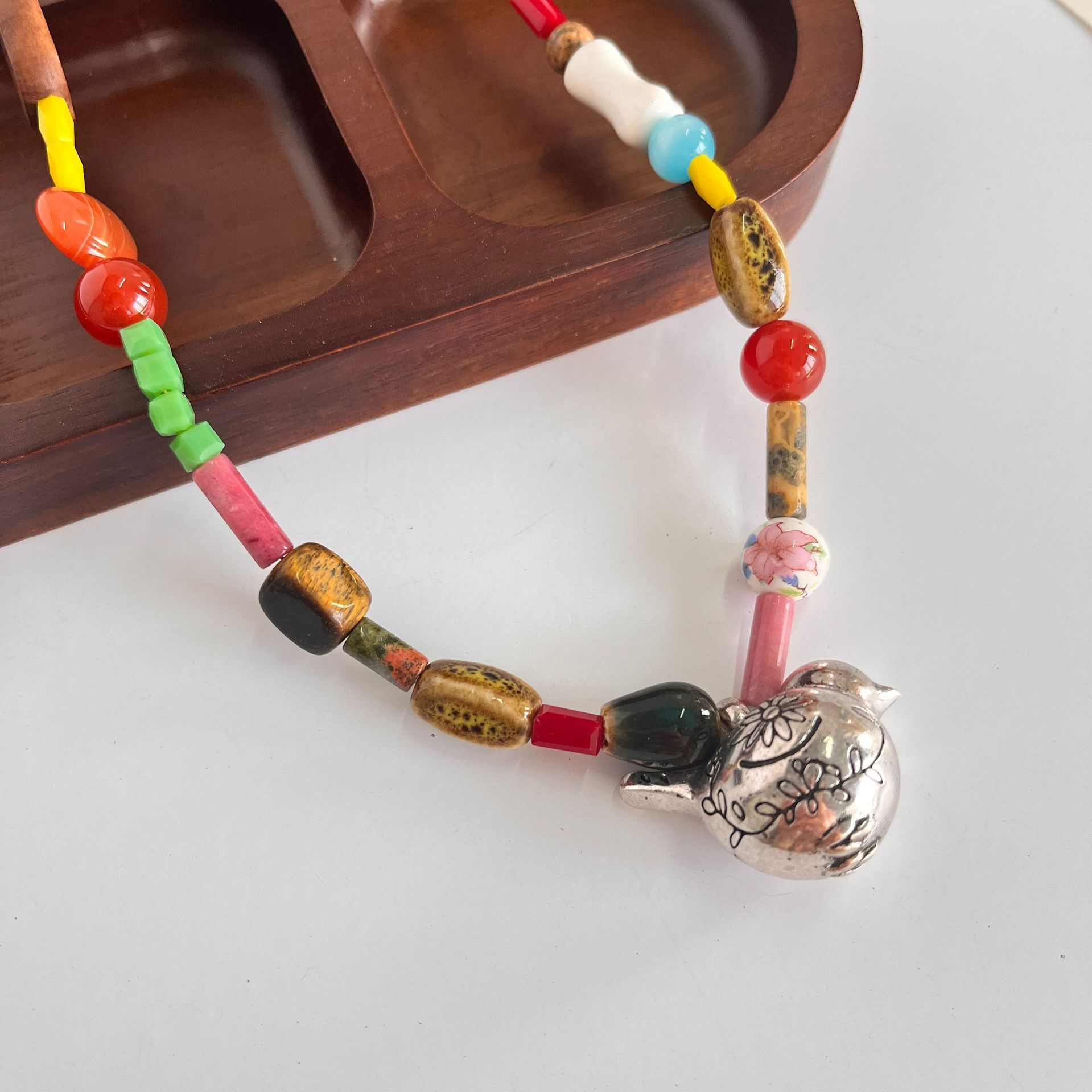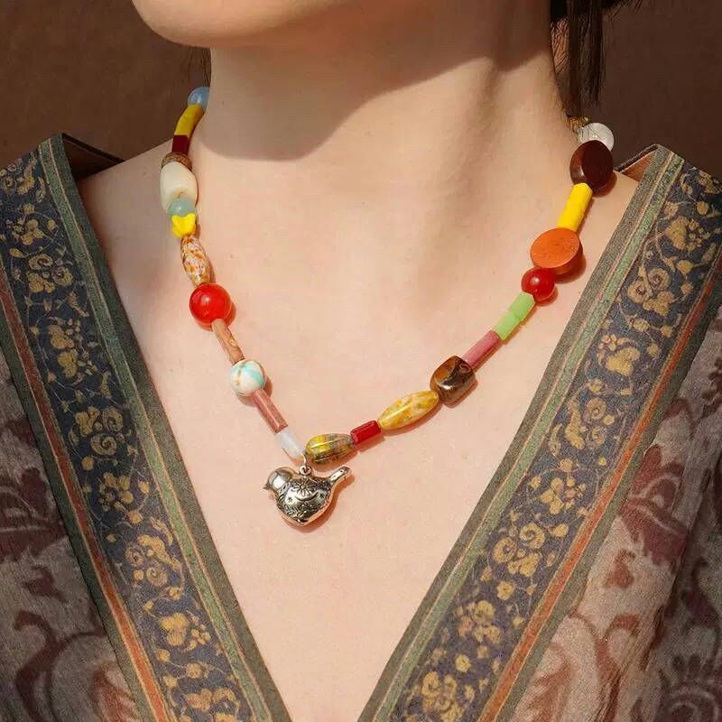 項鍊 多寶項鍊 滿足鳥寶 串珠項鍊 短款項鍊 小眾設計 氣質項鍊 波希米亞 可愛項鍊 高級感 鎖骨鏈 生日禮物 433