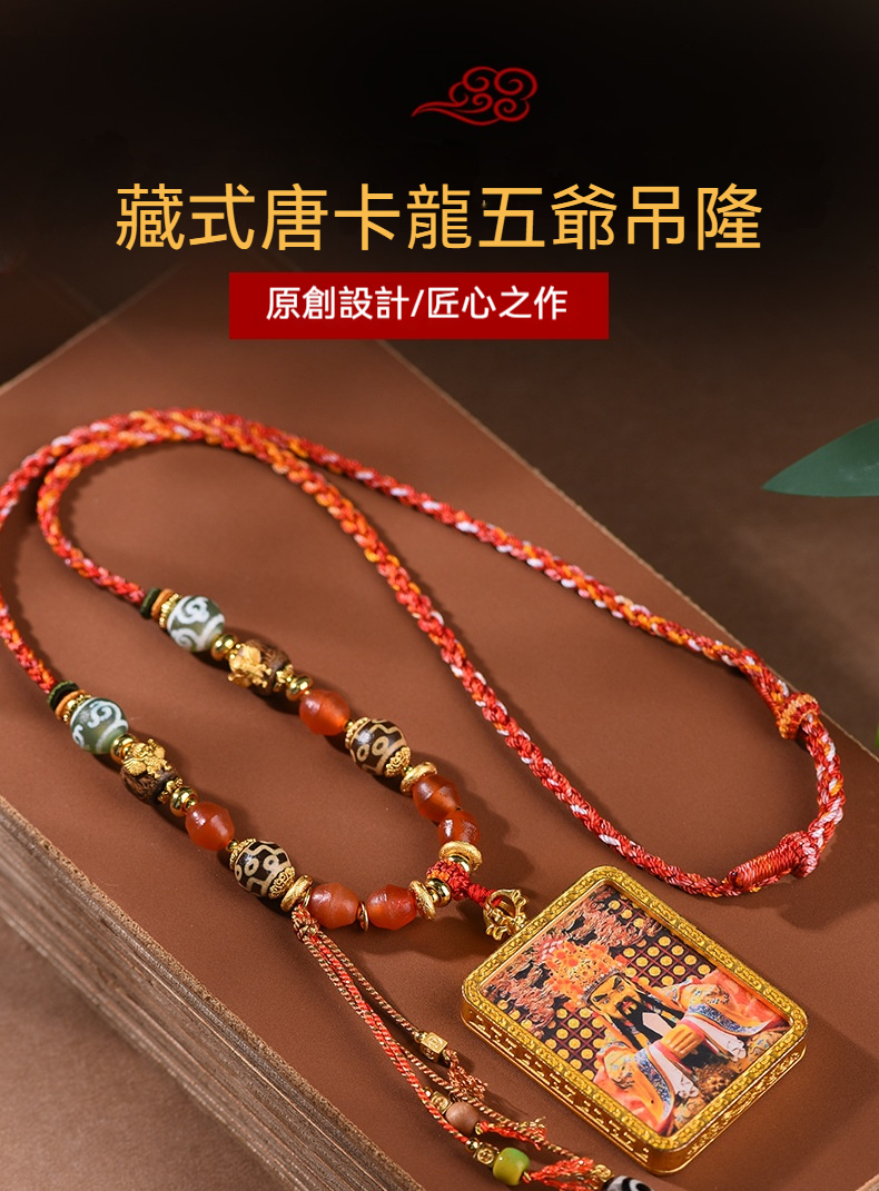 項鍊 招財項鍊 唐卡項鍊 龍五爺 吊墜項鍊 藏式項鍊 編繩項鍊 手工編織 五路財神 禮物 招財 事業運 貴人運 432