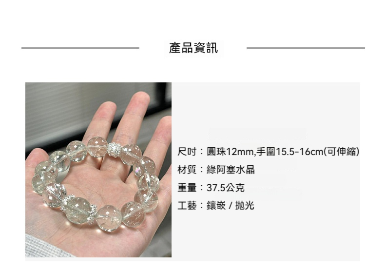 ✨ 商品尺吋:圓珠12mm,手圍15.5-16cm(可伸縮)