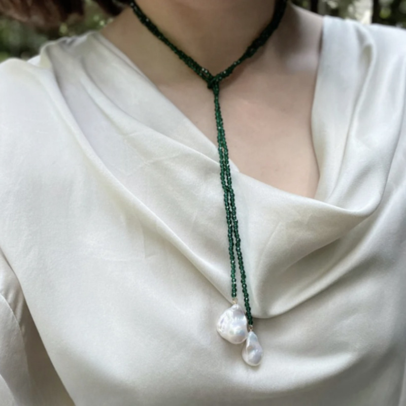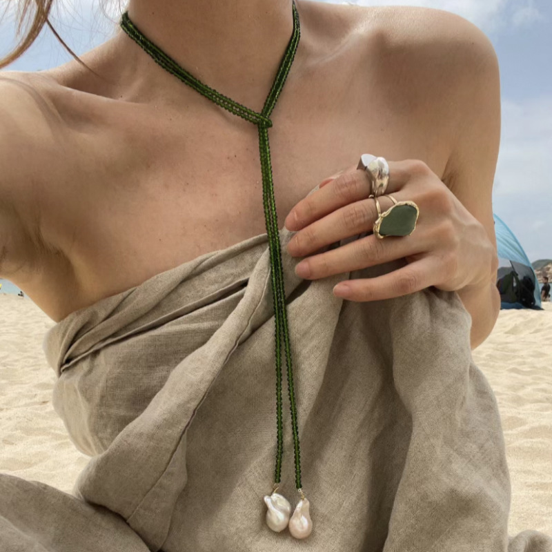項鍊 珍珠項鍊 綠尖晶石項鍊 寶石項鍊 長項鍊 頸鍊 鎖骨鍊 串珠項鍊 毛衣鍊 氣質項鍊 配飾 送女生 生日禮物 281
