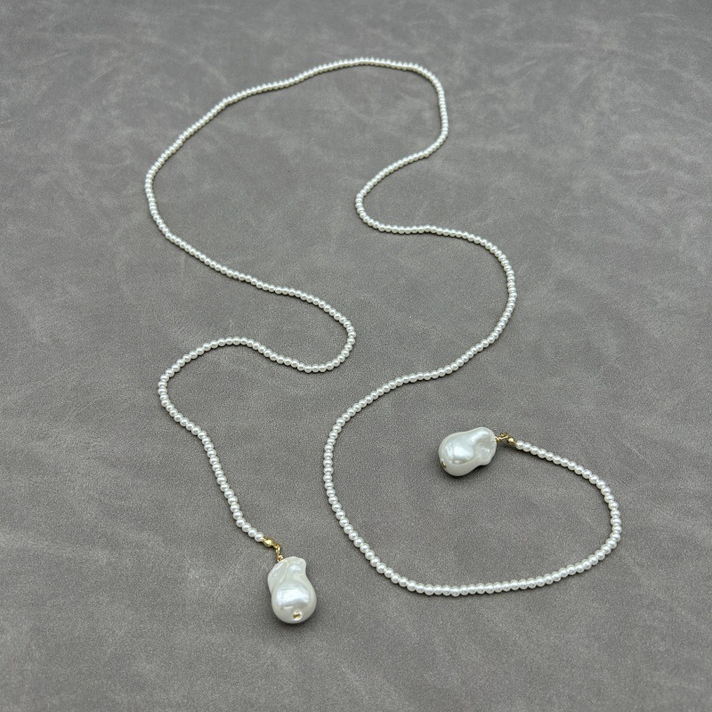 ✨ 商品尺吋:珍珠約高2.2公分*長1.5公分,鍊長99公分-101.5公分