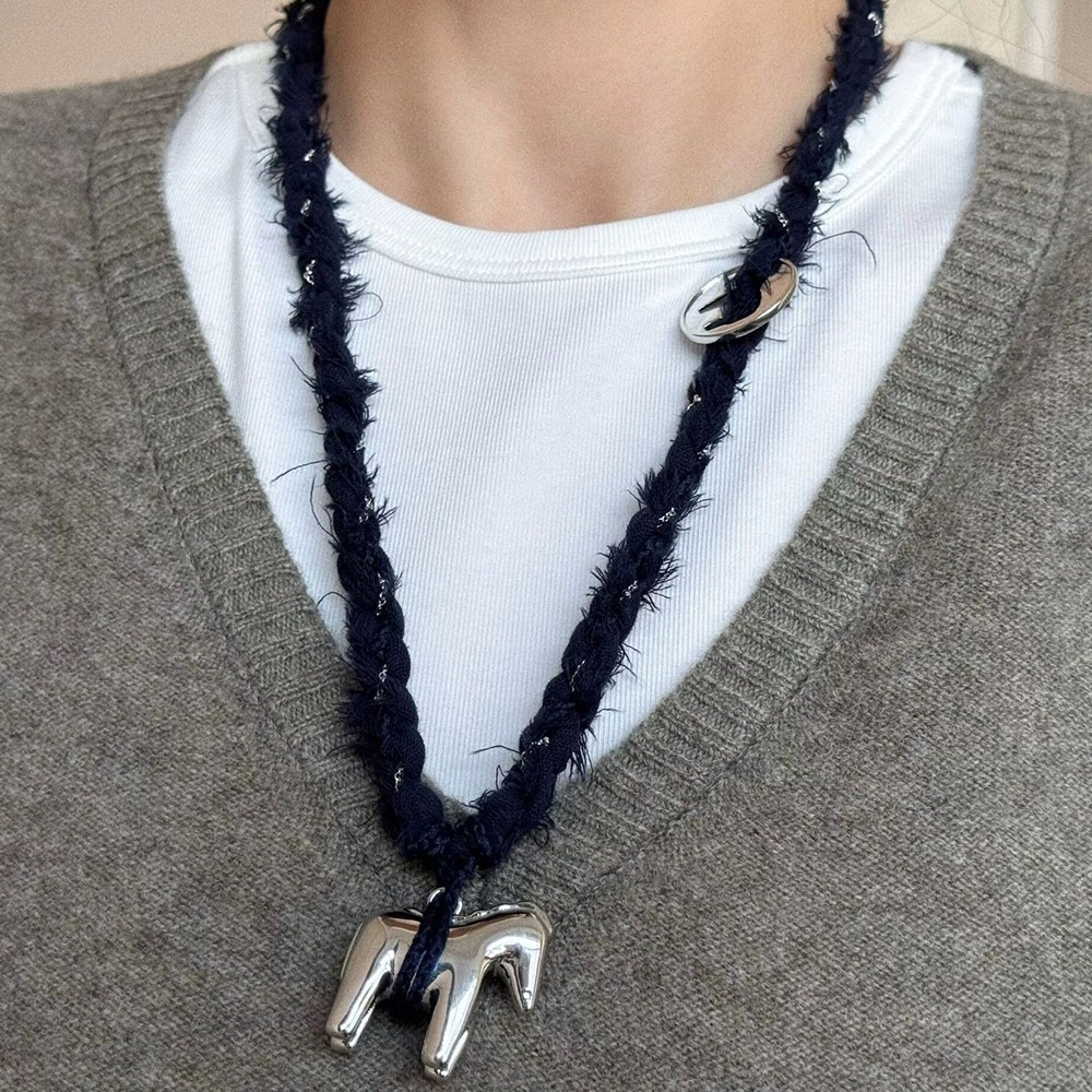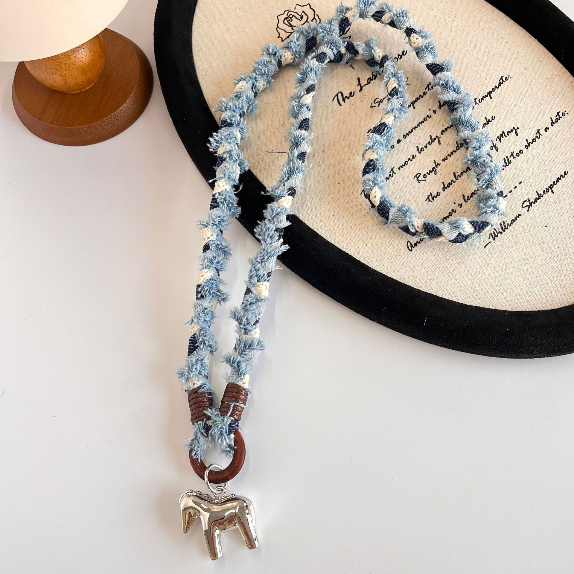 飾品 項鍊 女生項鍊 禮物 木馬 小馬 牛仔 手工編織 毛衣項鍊 長項鍊 情侶項鍊 生肖項鍊 設計感 對鍊 百搭 404