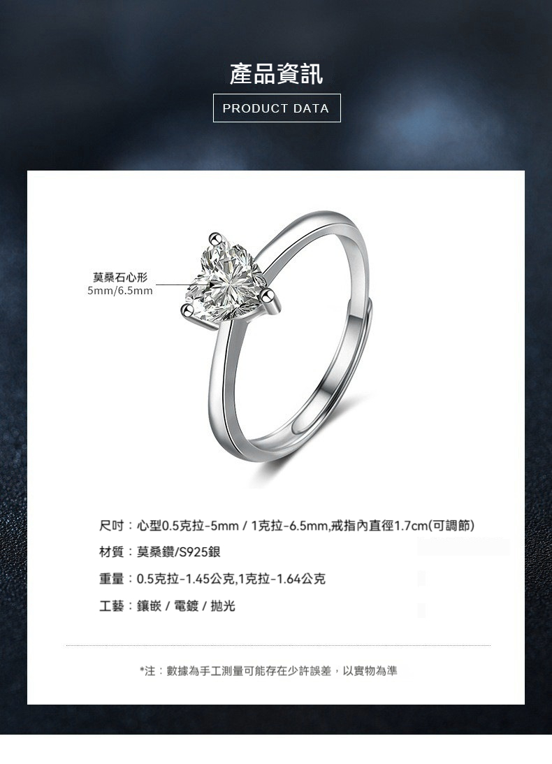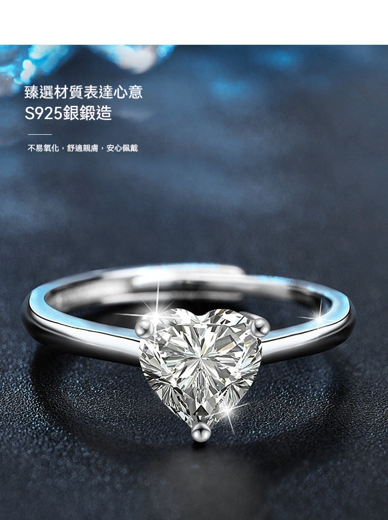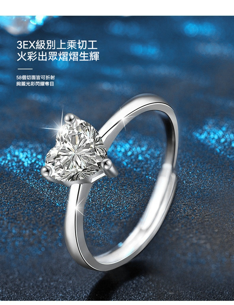 ✨ 商品尺吋:心型0.5克拉-5mm,1克拉-6.5mm,戒指內直徑1.7cm(可調節)