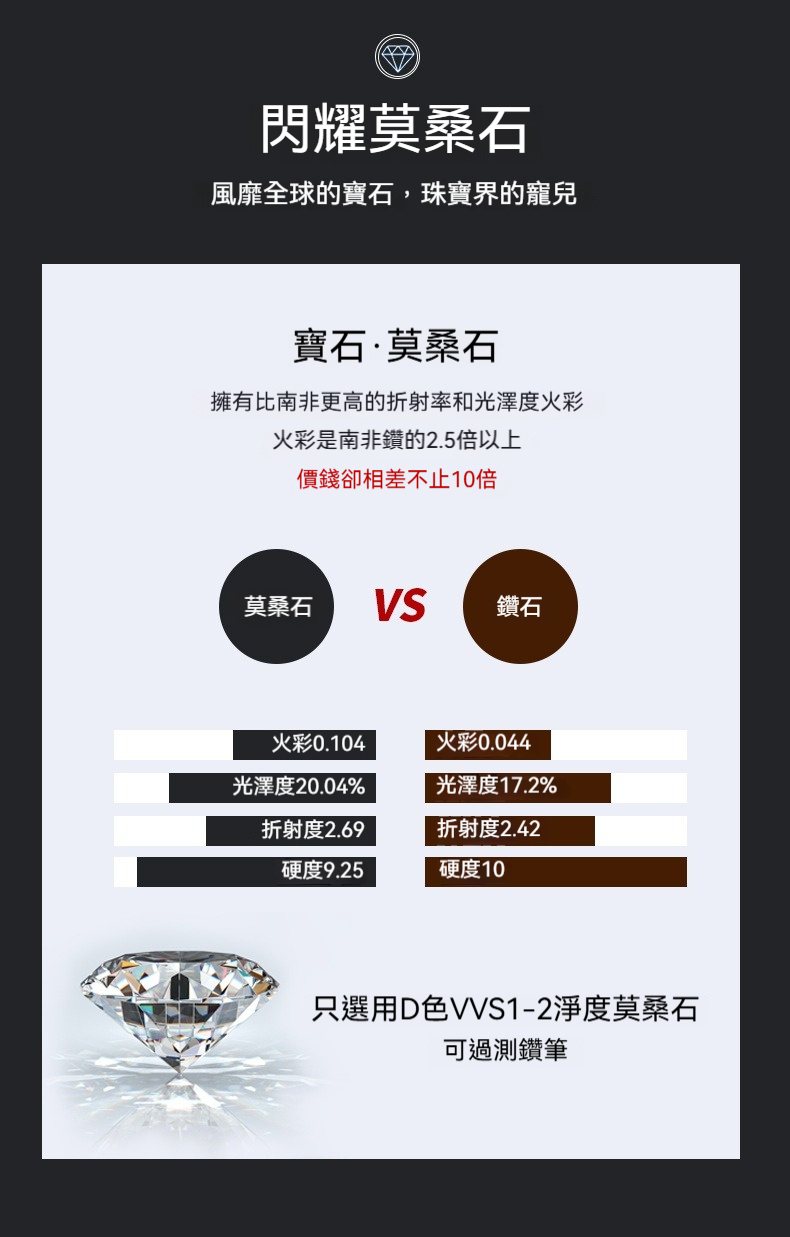 ✨ 材質:莫桑鑽/S925銀(12層電鍍工藝,不易氧化、不易過敏和掉色)