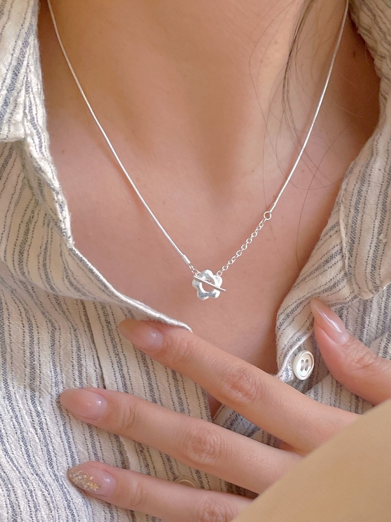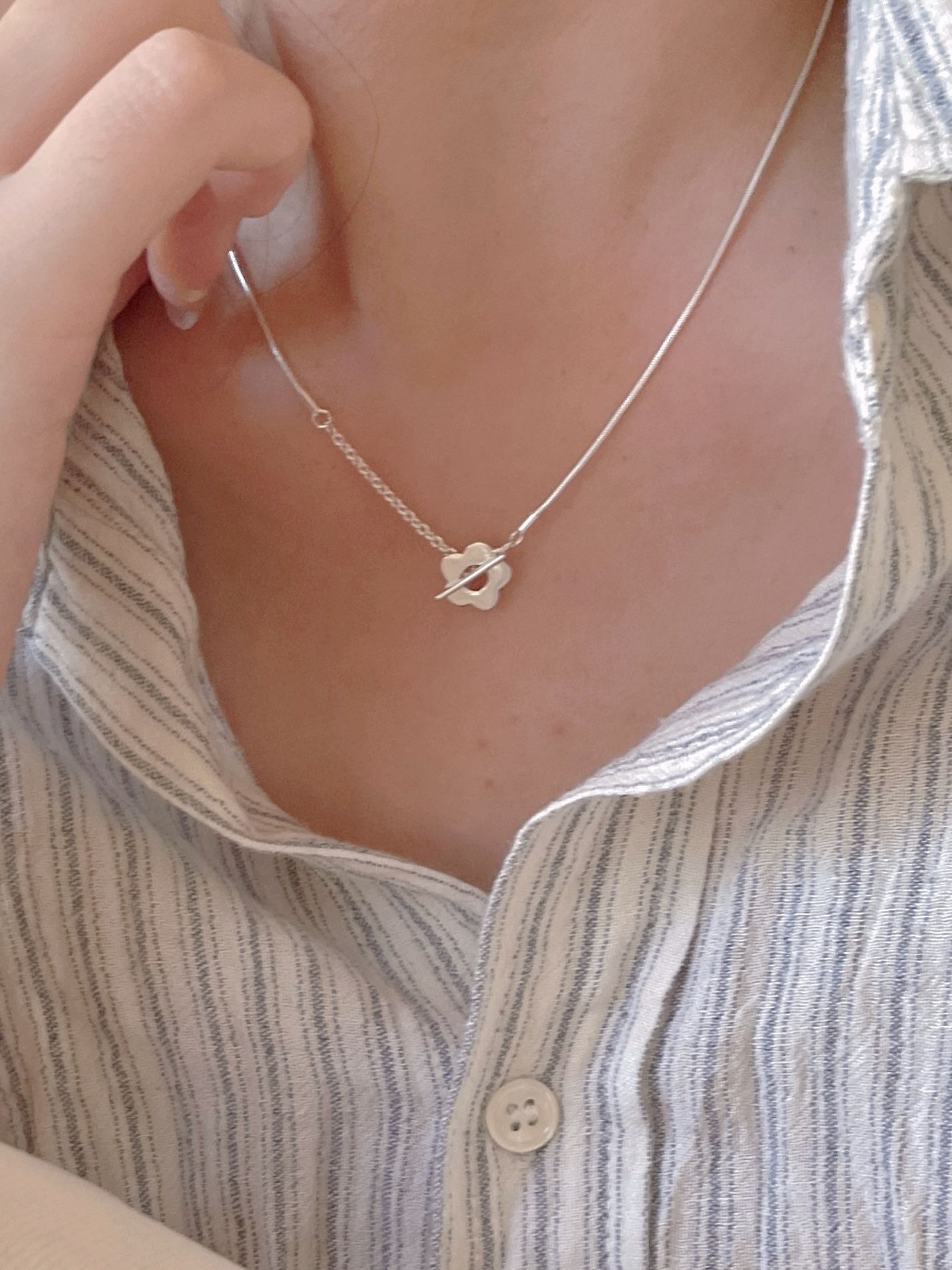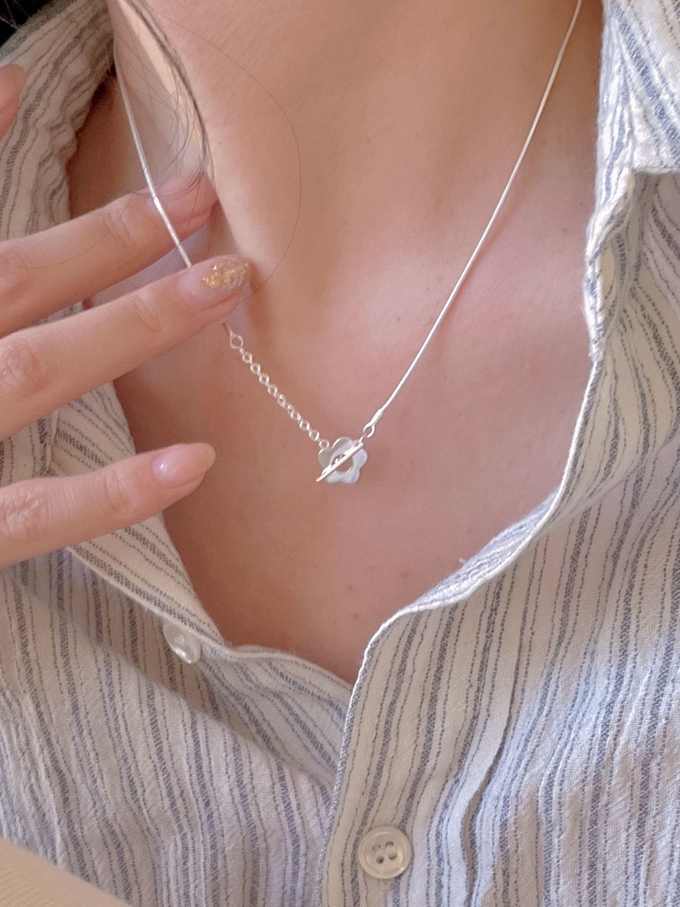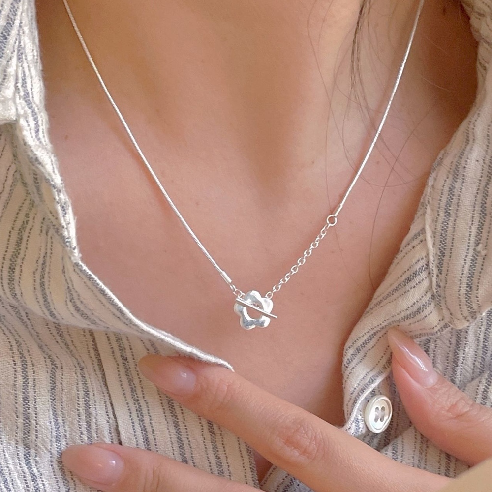 韓版 925純銀 小花OT扣 項鍊 簡約 氣質 ins 百搭 小紅書 項鍊 純銀項鍊 項鍊女 閨密項鍊 小花項鍊 382