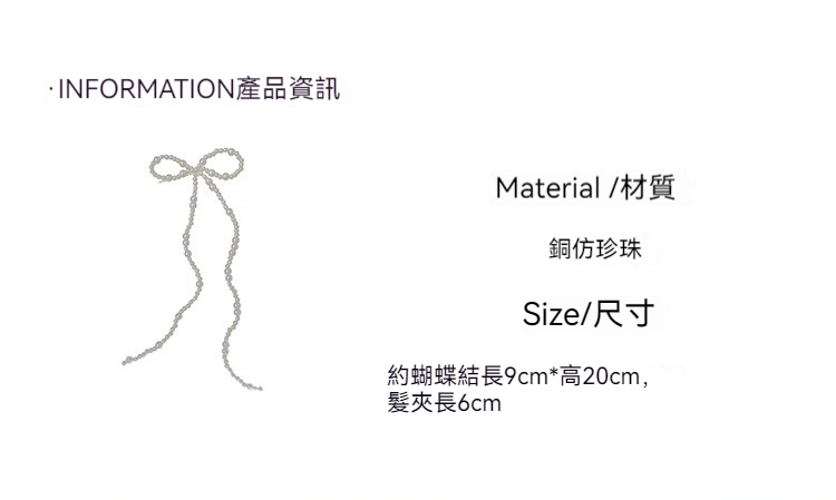✨ 商品尺吋:蝴蝶結長9公分*高20公分,髮夾長6公分