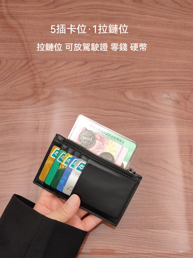 👜功能:5個插卡位 1個拉鏈袋(可以放紙鈔跟零錢)