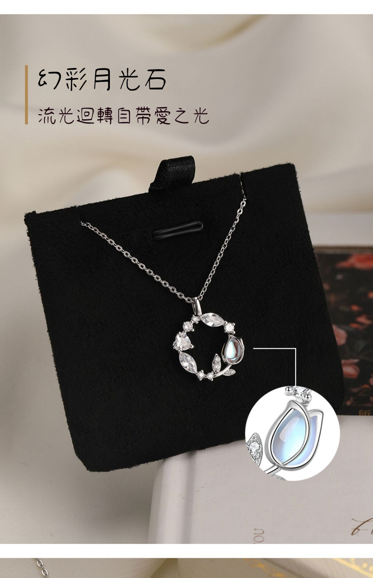 ✨ 材質:月光石、鋯石、S925銀(12層電鍍工藝,不易氧化、不易過敏和掉色)