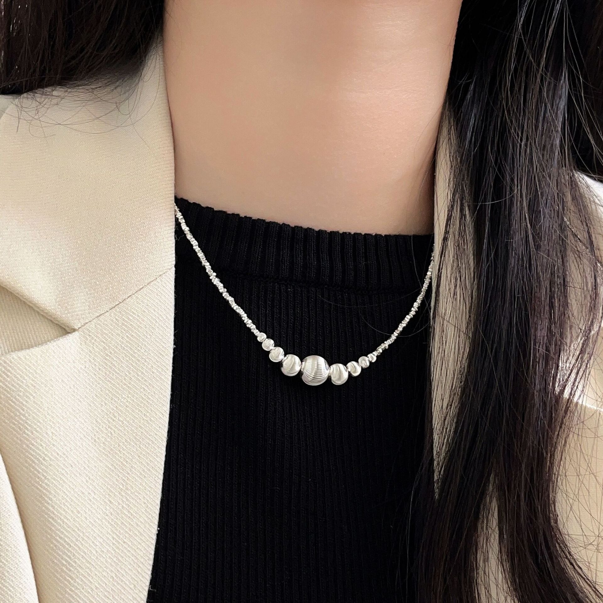 項鍊 純銀項鍊 碎銀項鍊 項鍊女 冷淡風 造型項鍊 浮誇項鍊 銀珠項鍊 小眾項鍊 氣質項鍊 鎖骨鏈 毛衣鍊 禮物 257