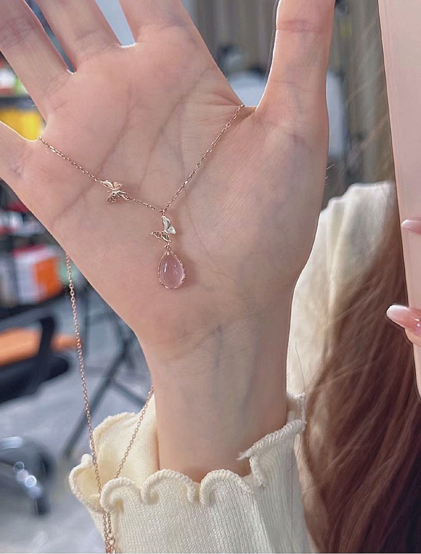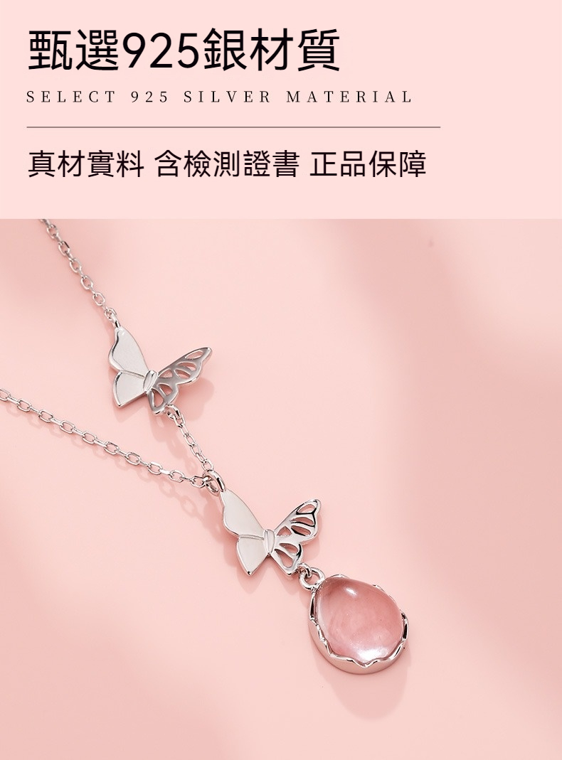 👜 材質:粉水晶、S925銀(12層電鍍工藝,不易氧化、不易過敏和掉色)
