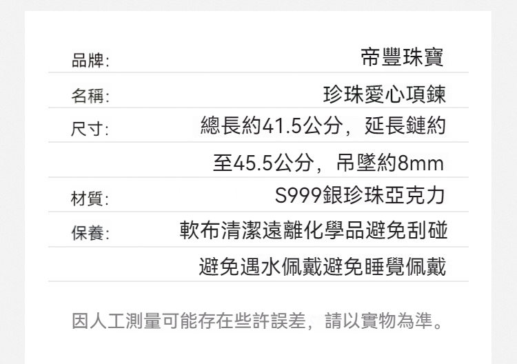 👜 材質:珍珠、壓克力、S999銀(12層電鍍工藝,不易氧化、不易過敏和掉色)