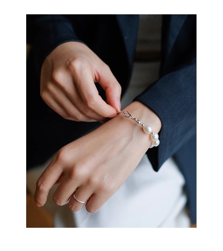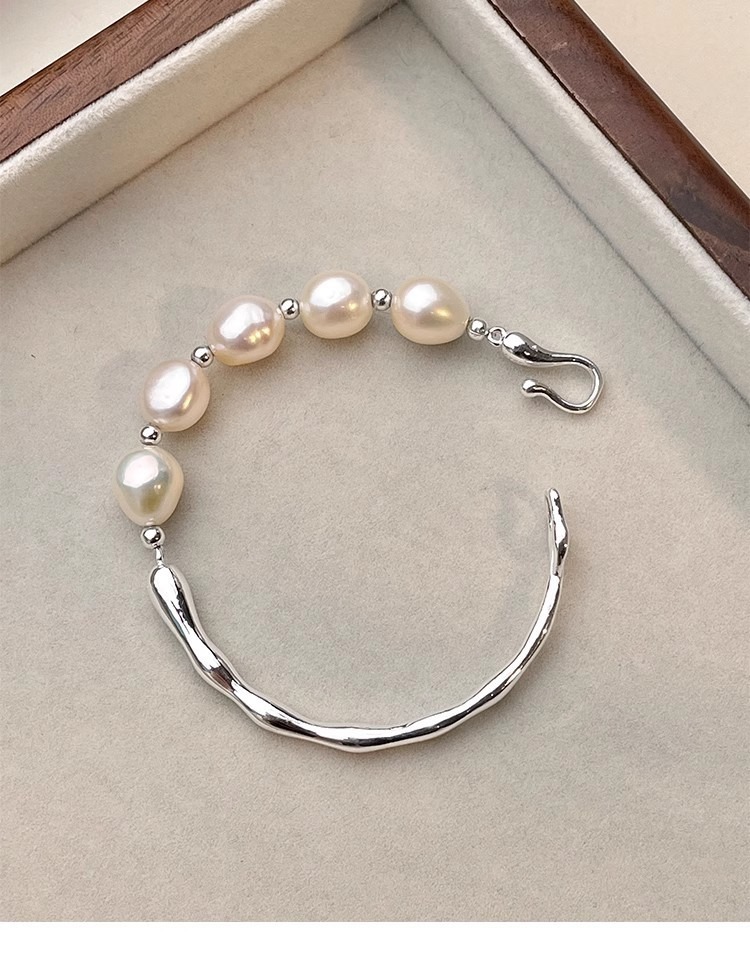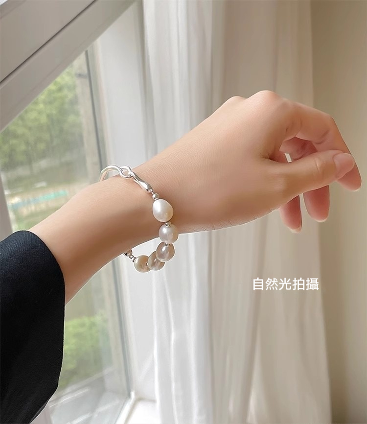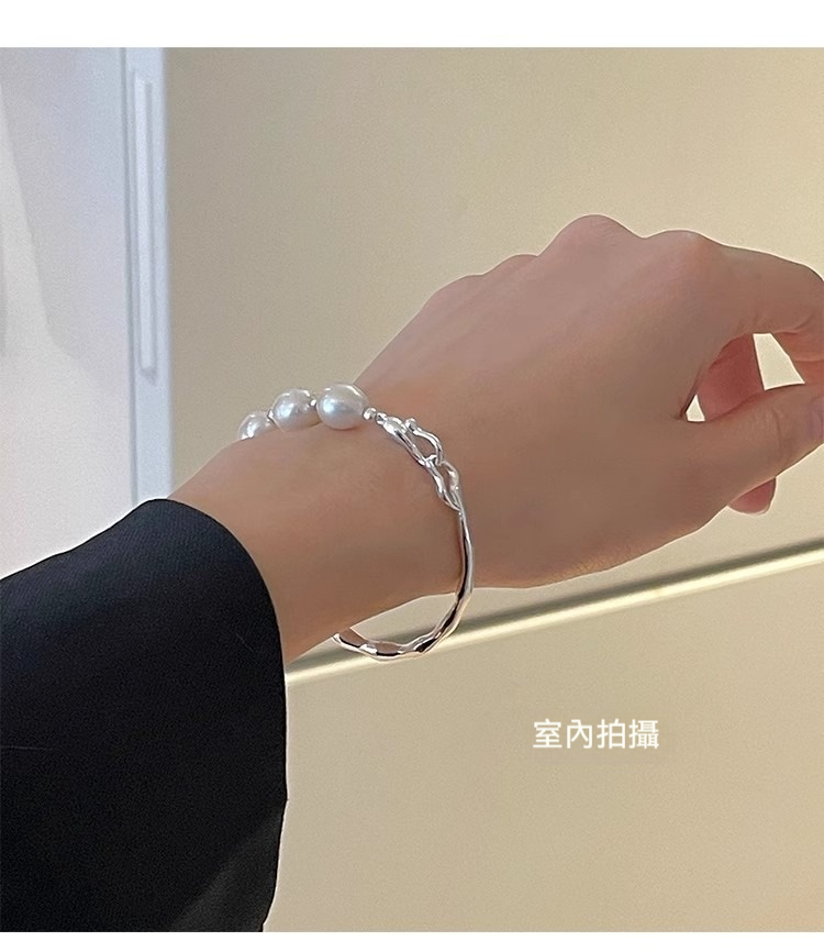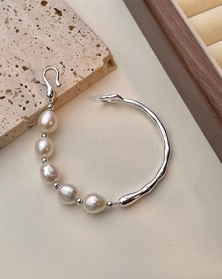 手鍊 手環 純銀手鍊 珍珠手環 銀手鐲 女生飾品 純銀手環 銀手環 半鐲 珍珠手鏈 小眾設計 不規則手環 禮物 241