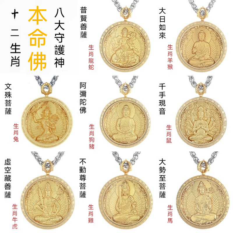 項鍊 本命年 飾品 男女通用 護身符 避邪擋煞 十二生肖 鈦鋼項鍊 八大守護神 普賢菩薩項鍊 觀音菩薩 佛像 388
