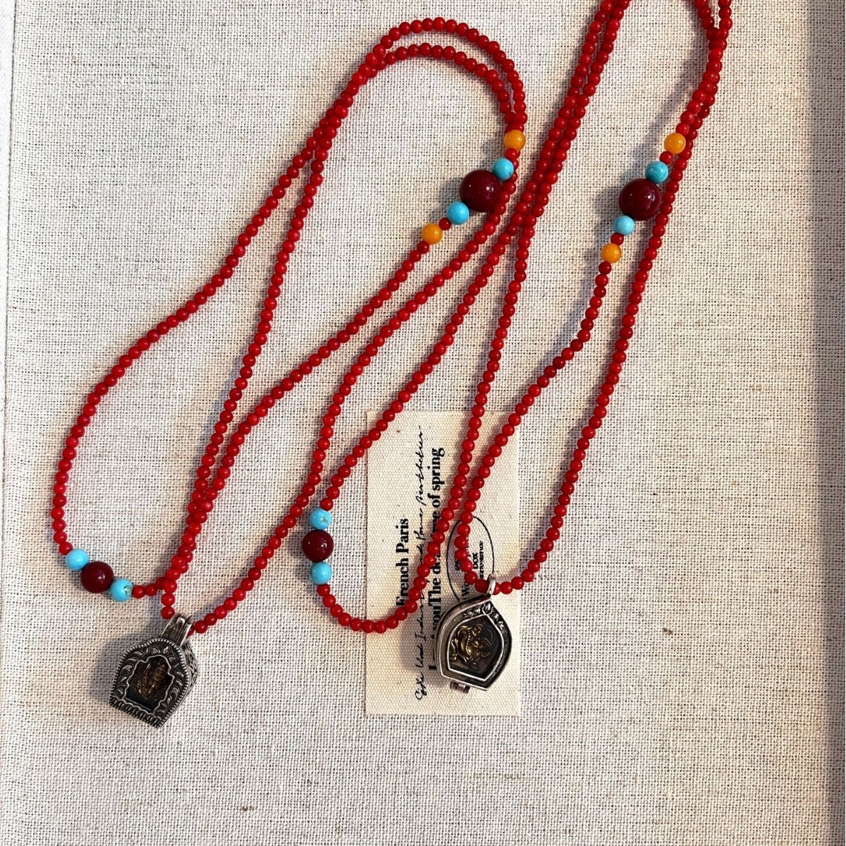 ✨ 材質:黃銅、海珠珊瑚、綠松石、蜜蠟、朱砂 / 墜子:合金